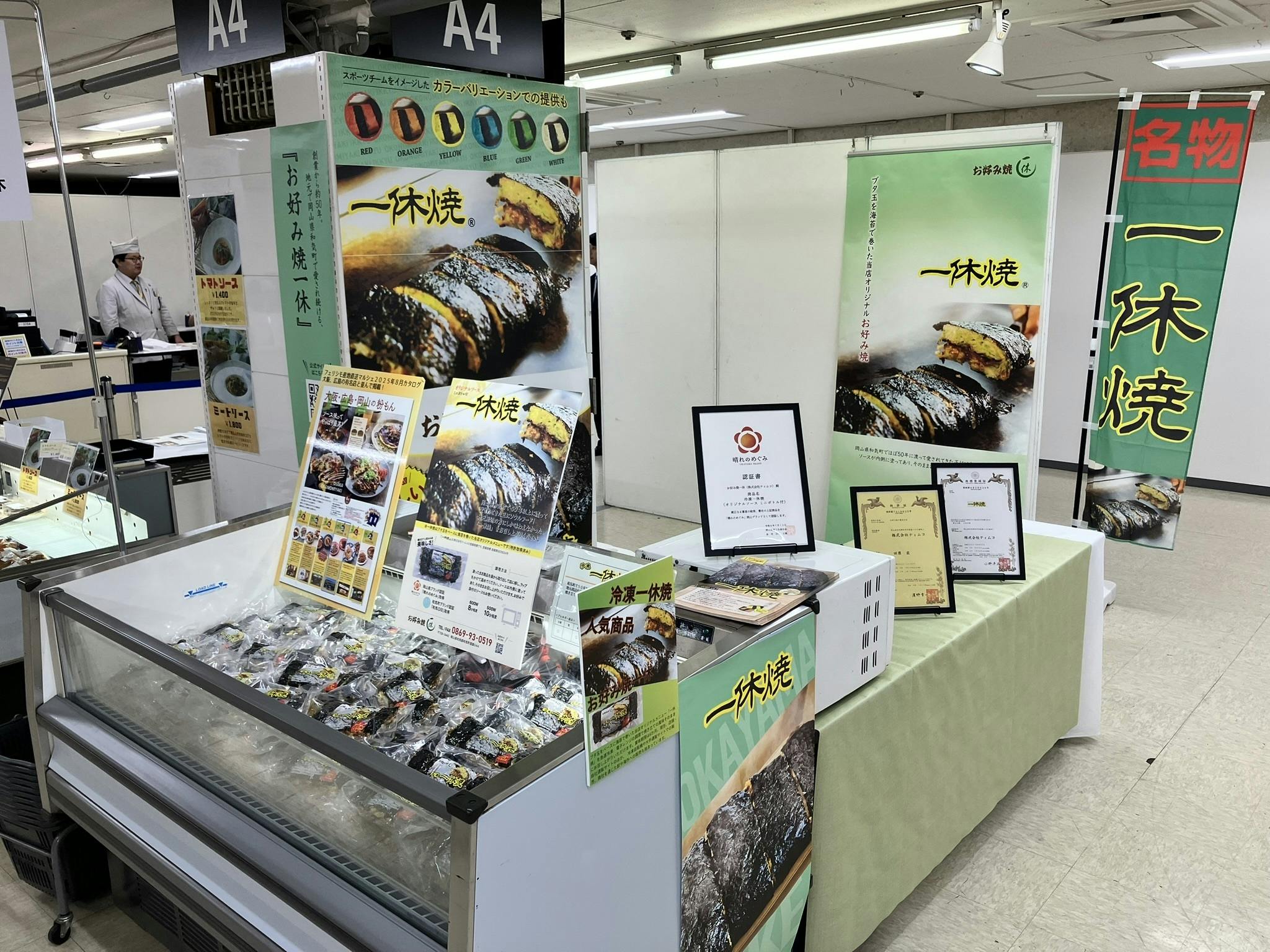 大学卒業後、大阪のIT企業にて企業の基幹システム構築など手掛けていましたが、妻の姉が若くして病死。当時はインターネットも、携帯電話もない時代であったため、その後のことを考えて妻の実家近く(岡山県和気町)に移住し、岡山県内のIT企業に転職。SE~PM~管理職として従事していましたが、そんなときに昔の仲間から大阪で起業しないかとの打診を受け、仲間とともに大阪でITの会社を起業。そこからは平日大阪、週末岡山という生活を16年ほど続けていましたが、子どもたちも巣立ち、この生活をいつまで続けるのか、と考えていたときに、現店舗「お好み焼一休」の創業者のご主人より事業承継の打診を受け、熟考の末、1年ほどかけて前職を引き継いだ後、10名ほどのスタッフ丸ごと抱えて事業を承継(以前、この辺りの経緯について取材いただきました)し、同時に法人設立を行ったのが6年前です。が、その1年半ほど後にはコロナ禍が始まり、大きな打撃を受け、待つだけの営業に限界を感じたことから、何かできることはないかと考えたのがオリジナルお好み焼【一休焼】の冷凍での販売でした。そこから、事業再構築補助金を申請して製造販売に漕ぎつけ、現在は店頭、自社通販サイトのほか、冷凍自販機運営会社への卸、ふるさと納税の返礼品としての提供、百貨店経由での東京のアンテナショップへの提供、大手通販会社の頒布会への提供、大手商社経由でのギフト商品としての提供など進めてきました。さらに販路を開拓する中でスタジアムや野外などでは、他の軽食に比べてお好み焼が少ないことに気づき、ここに【一休焼】の形状がワンハンドスタイルのお好み焼として活用できそうであると考えたことから、冷凍による流通ができること、電子レンジやスチーマーなどによる調理のし易さなど踏まえ、【一休焼】の製法、ワンハンドスタイルとしての提供方法に関する特許(特許第7419625号)を取得、また商標登録(登録第6828034号)も行った上でアプローチを進めています。