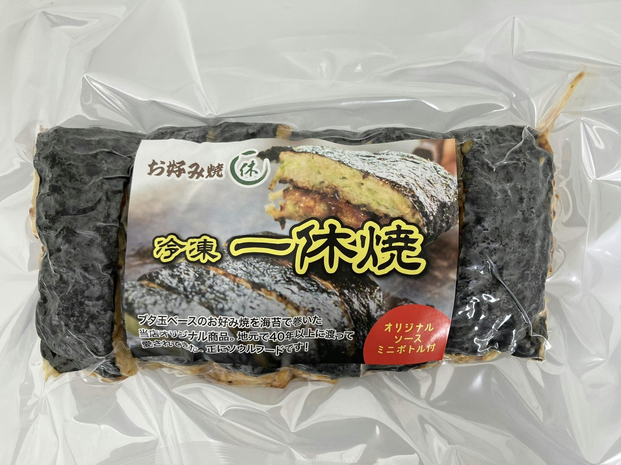【一休焼】はブタ玉を四角に焼いた後、海苔を貼り付け、内側にソースを塗り込み、これを折りたたんでカットした、見た目にも珍しい形状のオリジナルお好み焼です。海苔の風味と相まって、お店では人気の商品であり、海苔の効果か、お客様からは冷めても美味しいと評判をいただいています。冷凍での販売を始めたことにより、今まで店舗周辺の方にしか知られていなかった【一休焼】をより多くの方にお届けできるようになったものの、まだまだ認知度は低い状況であり、【一休焼】のブランディングを進め、【一休焼】の認知度は元より、店舗(お好み焼一休)、並びにこの【一休焼】の発祥の町として「岡山県和気町」の認知度を高めたいと考えています。その一環として展開を進めている、この形状を活かしたスタジアムフード、ファストフードへの活用は、各所でのプレゼンや展示会などで多くの共感をいただいており、ぜひ実現したいと考えています。