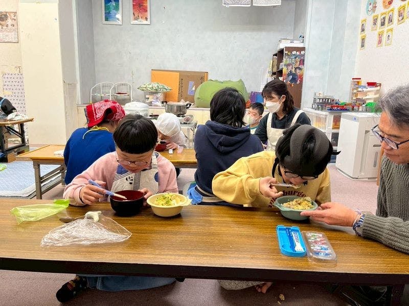 うどんも親子丼も子どもたちがとても意欲的に調理してくれてみんなで美味しく「いっただきまーす!」