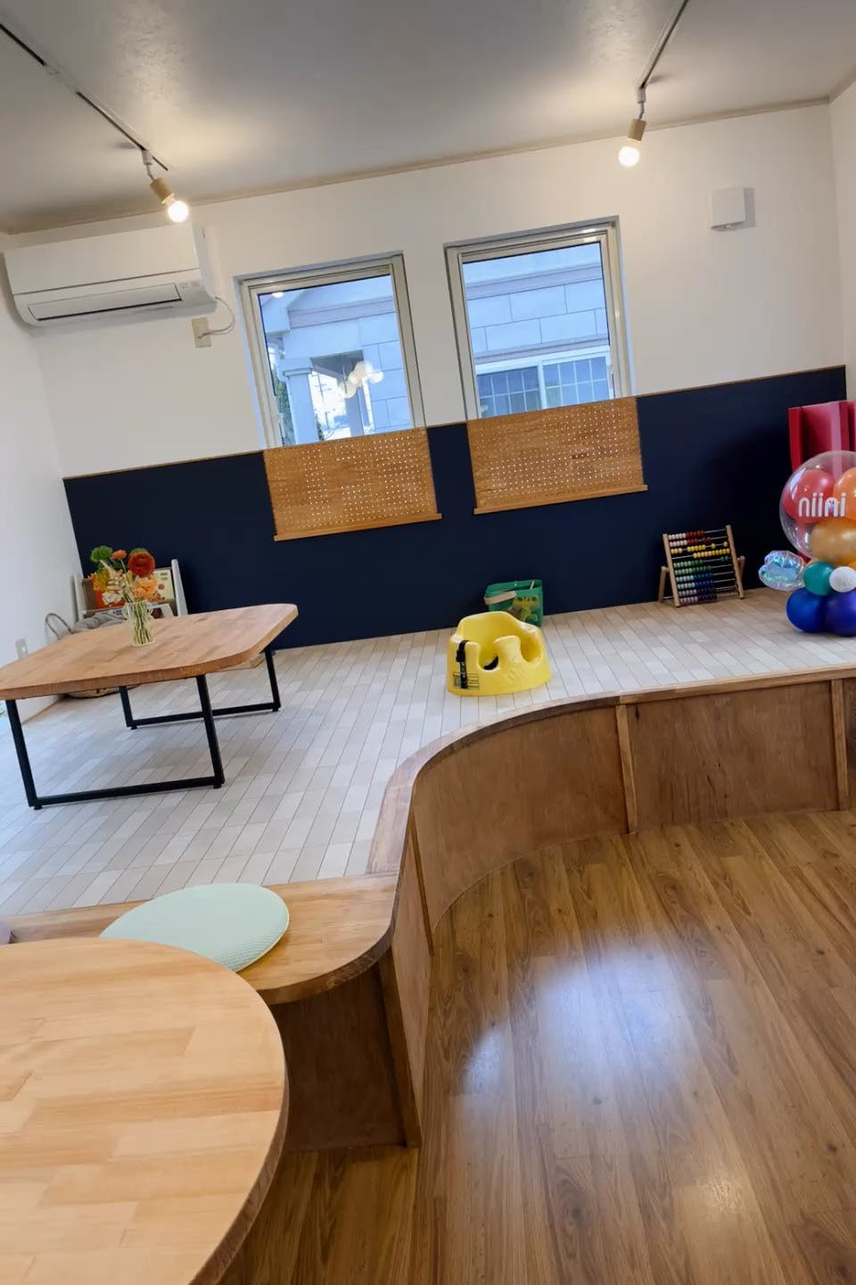 赤ちゃんや小さなお子さん連れも沢山いらっしゃるniini。ご来店いただいた方でお気づきになっ方もおられるかもしれませんが、実はお店のテーブルや小上がりには「かど」がありません!