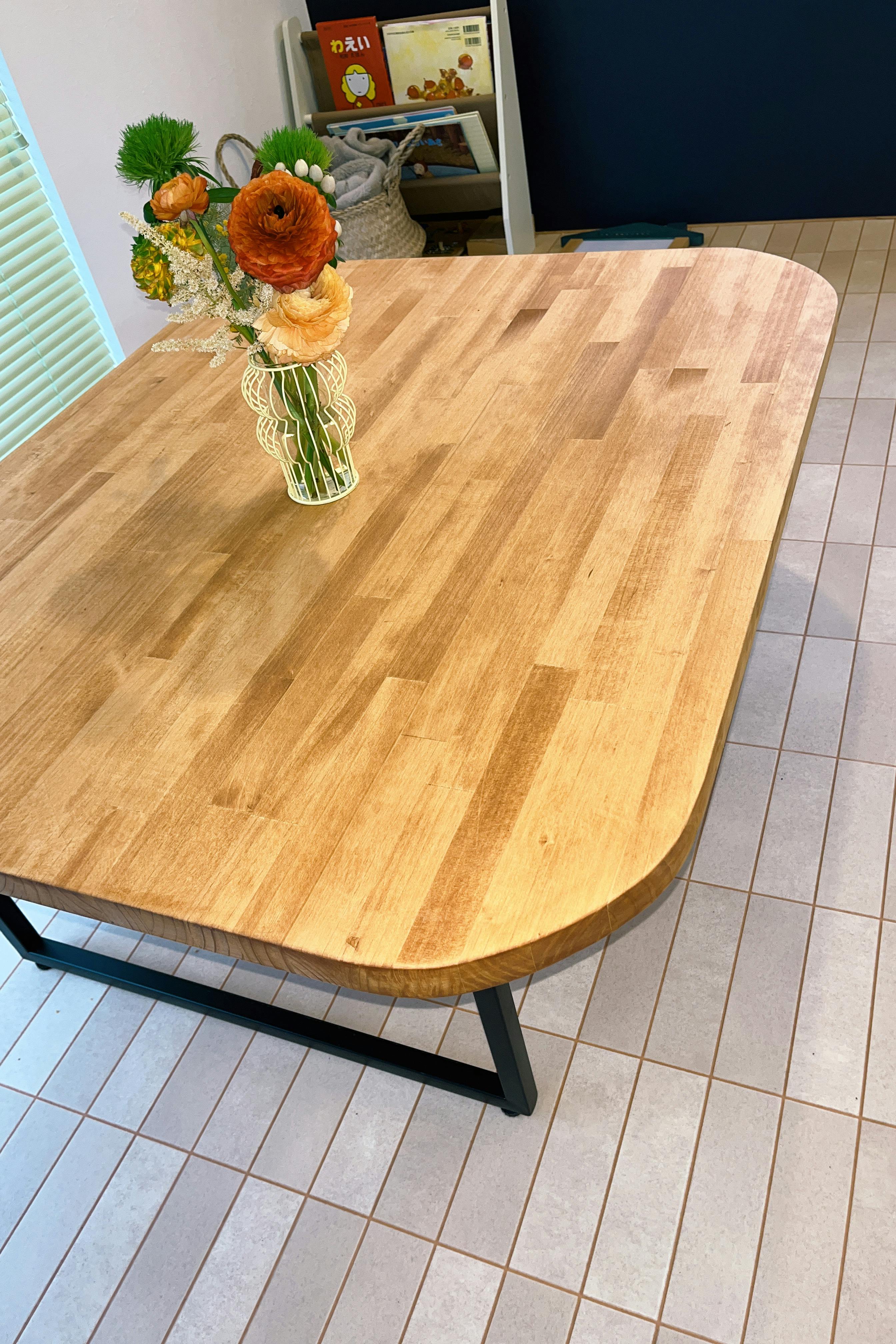 万が一ゴツンしてしまった時も、角がなければ少しでも子どもたちの安全を守れるのではないかと思い、全て角のないテーブルや小上がりを製作いただきました。