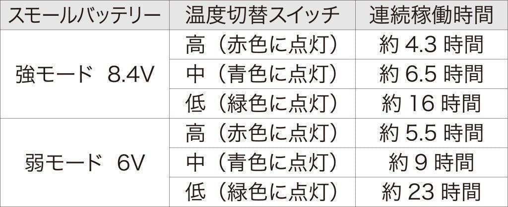 ※上記は満充電の値です。着用条件、環境などの違いに応じて異なりますので目安としてください。稼働時間の誤差は、初期不良の対象外とさせていただきます。