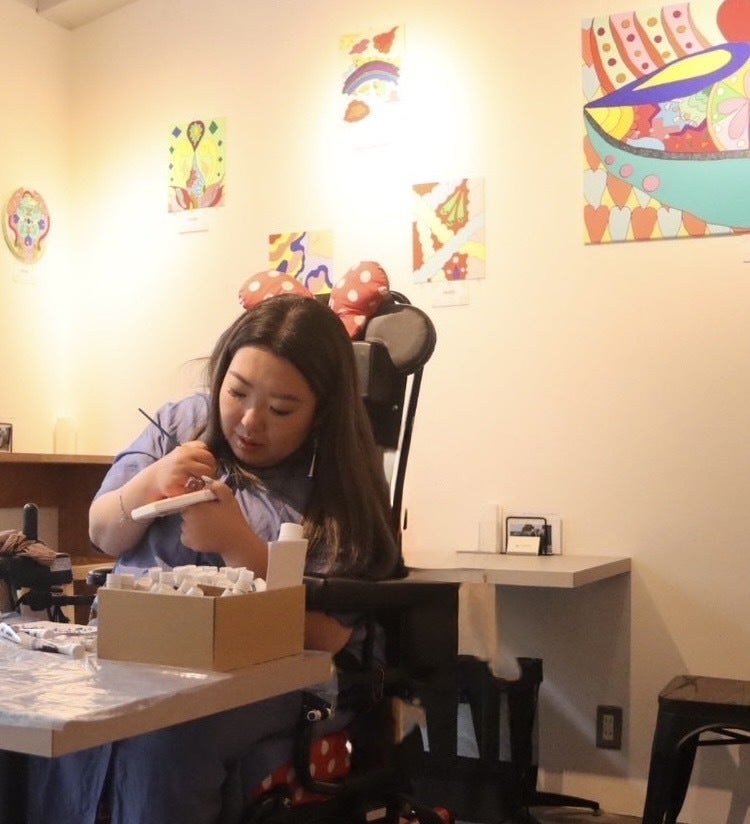 車椅子だとなかなか社会に出る場面が少なく、籠ってしまいがちですが、アートを通じて展示会に参加したり、個展を開いたり社会参加をすることで、自分の絵を観てもらうこともできるけど、出展者さんと関われたり人と関わることができるのですごく大切な存在です。