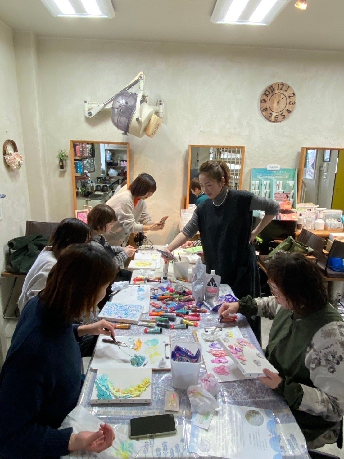 アートを始めたのが2年前なのですが気になってたテクスチャーアートのワークショップに参加したのがきっかけでした。