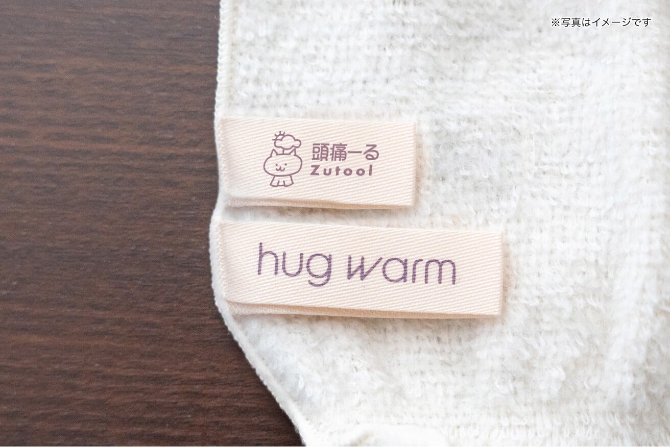ハグウォーム・ハーフケットにふんわり包まれるぬくもりとマロのやさしい存在が、心をほっとほどく癒しのひとときを届けます。今回ハーフケットには、「頭痛ーる」オリジナルのタグをあしらった特別仕様をご用意しました。