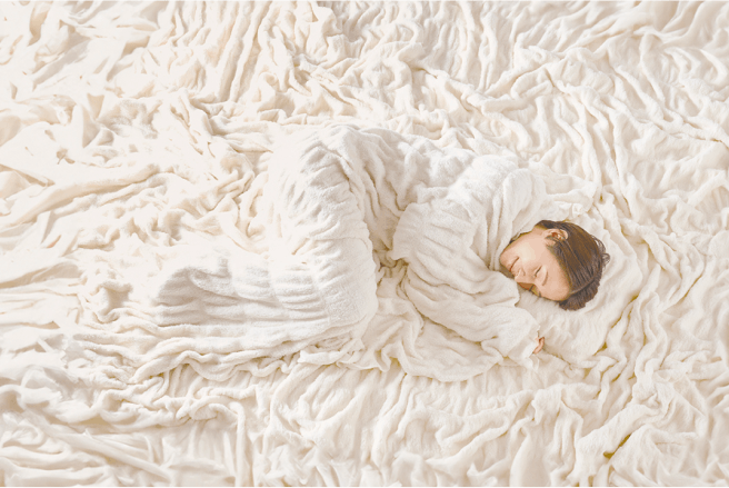 ハグウォームをかけると「プレミアムツイスト」の吸湿発熱と保温で、ぽかぽかと日向ぼっこするような暖かさが全身を包みます。
