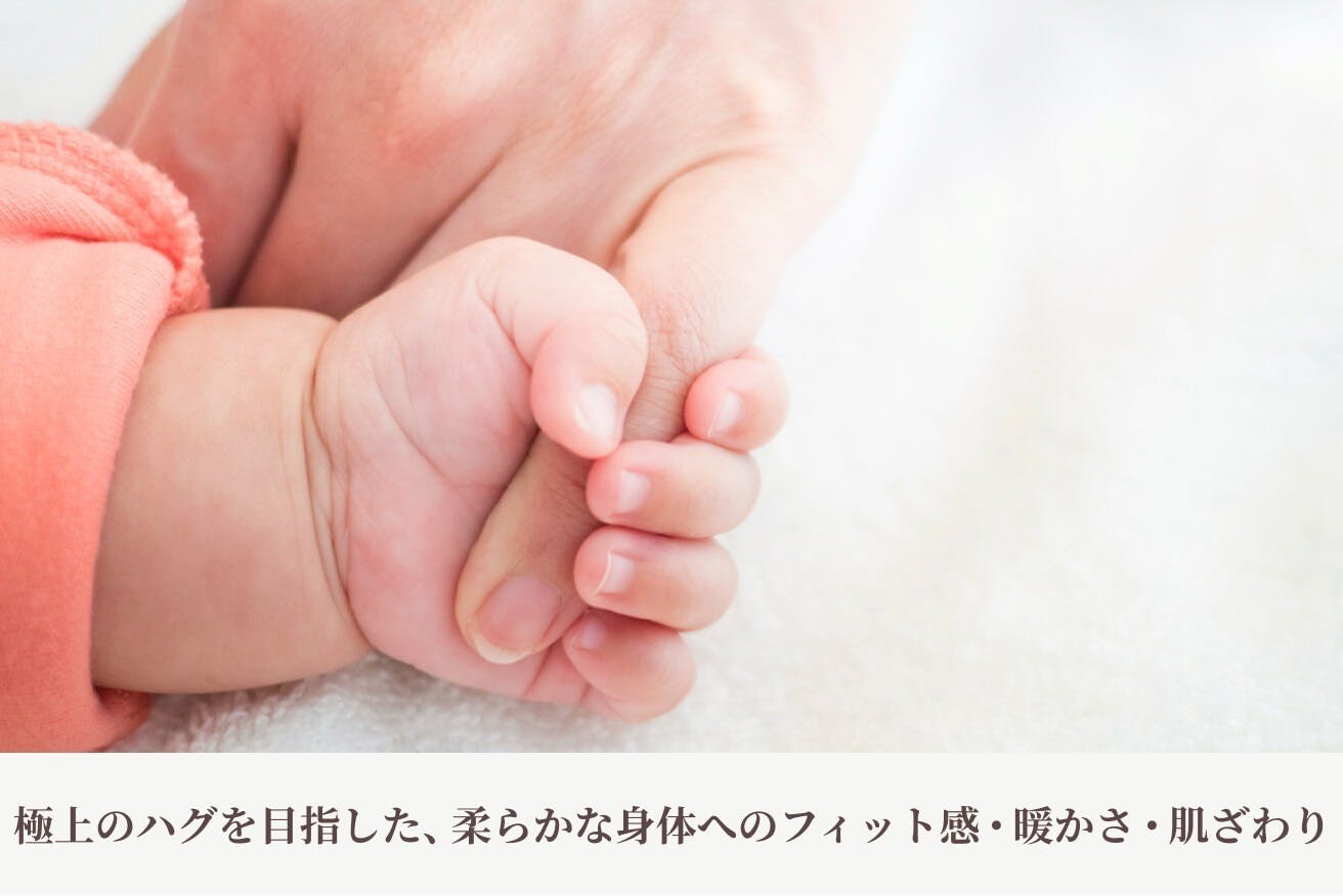 「極上のハグを目指した、柔らかな身体へのフィット感・暖かさ・肌ざわり」