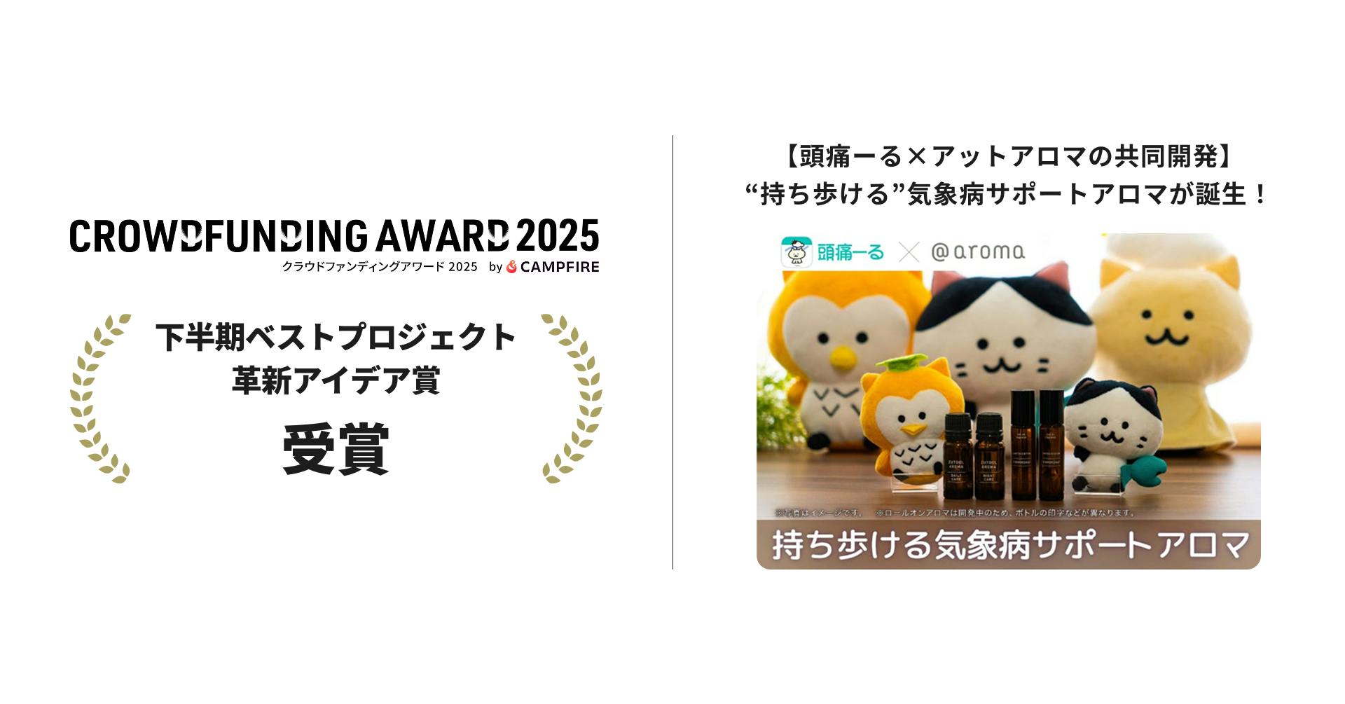 皆さまへ嬉しいご報告があります。この度、私たちの前回のプロジェクト 「持ち歩ける気象病サポートアロマ」 がクラウドファンディングアワード2025 下半期ベストプロジェクト革新アイデア賞 を受賞しました!
