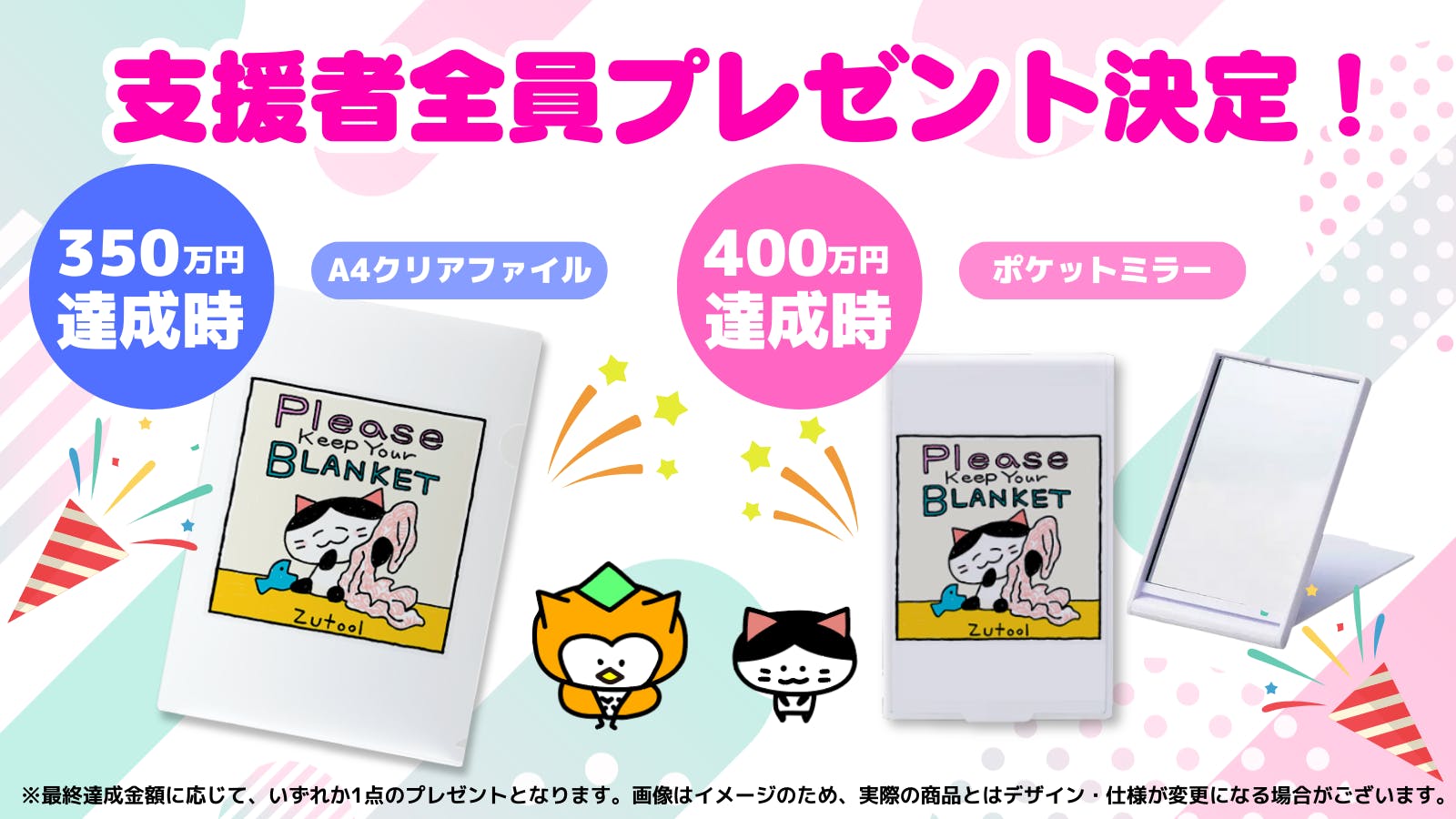 また、「支援者全員プレゼント」に関するアンケートにもご協力いただみなさんへ、心より感謝いたします。