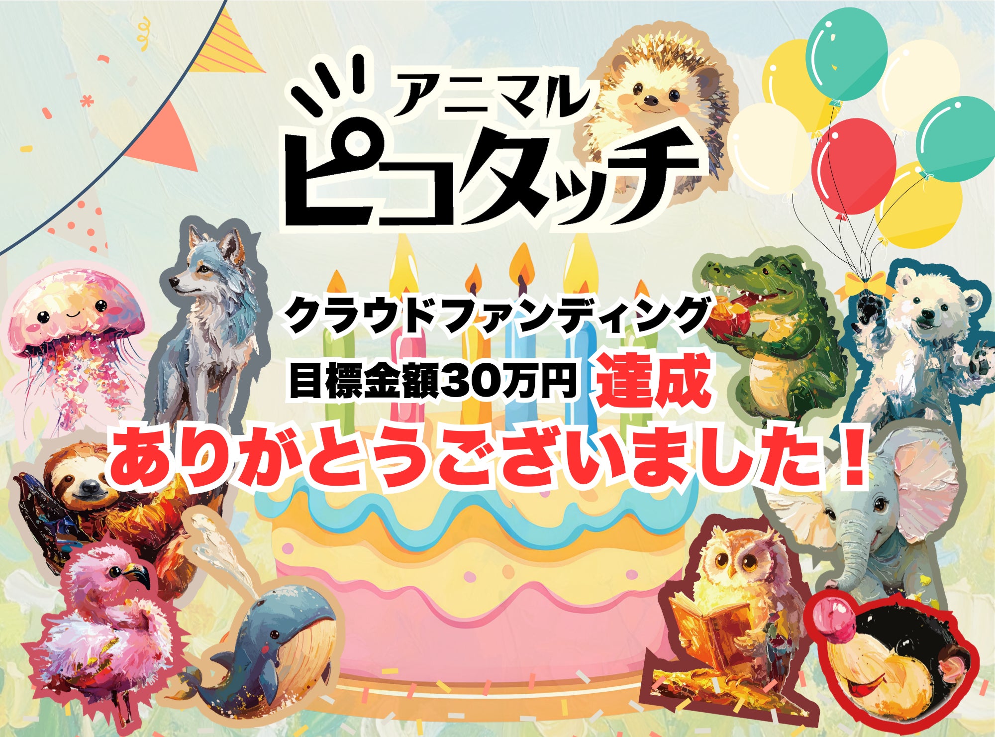 皆さまこの度は「アニマルピコタッチ」クラウドファンディングにご支援・応援をいただき、誠にありがとうございました。おかげさまで、リターンのお届けを含むすべての工程が無事に完了いたしました。改めて心より感謝申し上げます。皆さまからお預かりした支援金は、主に広告に関わる費用、ならびに開発・改善のための設備費として大切に使わせていただきます。「アニマルピコタッチ」は、今回のクラウドファンディングで一区切りではありますが、ここがゴールではありません。今後は、より多くの方に実際に触れて楽しんでいただける機会を増やし、イベントや展示なども含めて展開を広げていく予定です。少しずつではありますが、着実に成長させていきたいと考えています。なお、ルールやゲーム内容などでご不明点がございましたら、お気軽にお問い合わせください。また、実際に遊んでみたご感想やレビューなどを、InstagramやFacebookに投稿していただけましたら大変嬉しく思います。その際は、Instagram【@cardya_kenbisha】、Facebook【プラスチックカード印刷の株式会社研美社】をタグ付けしていただけますと幸いです。改めまして、ご支援・応援をいただいた皆さまに心より御礼申し上げます。今後とも「アニマルピコタッチ」をどうぞよろしくお願いいたします。