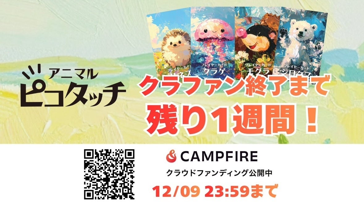 アニマルピコタッチのクラウドファンディングは、残り1週間となりました。