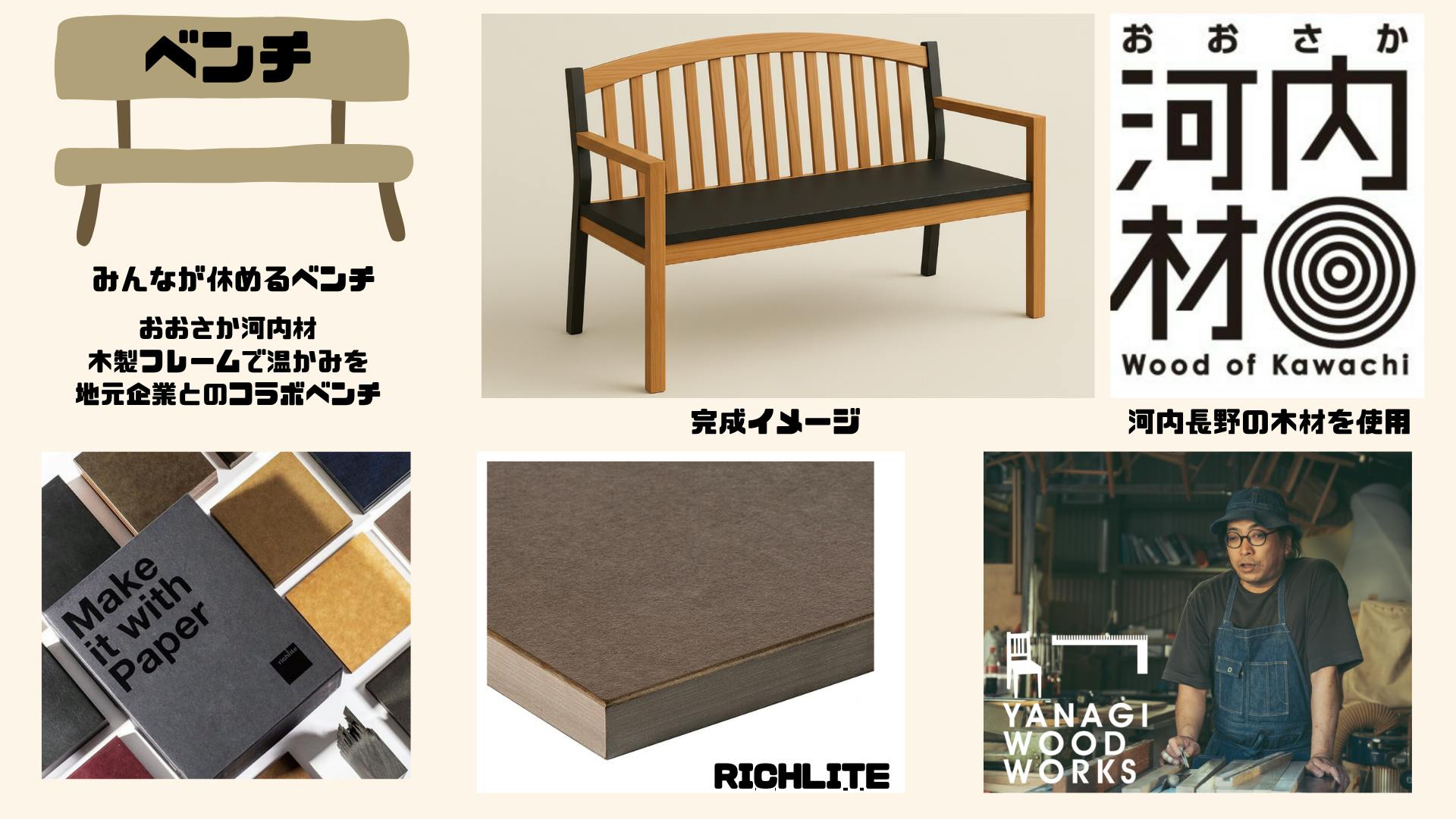 構造にはおおさか河内材を、座面にはリッチライト(Richlite)を使用します。