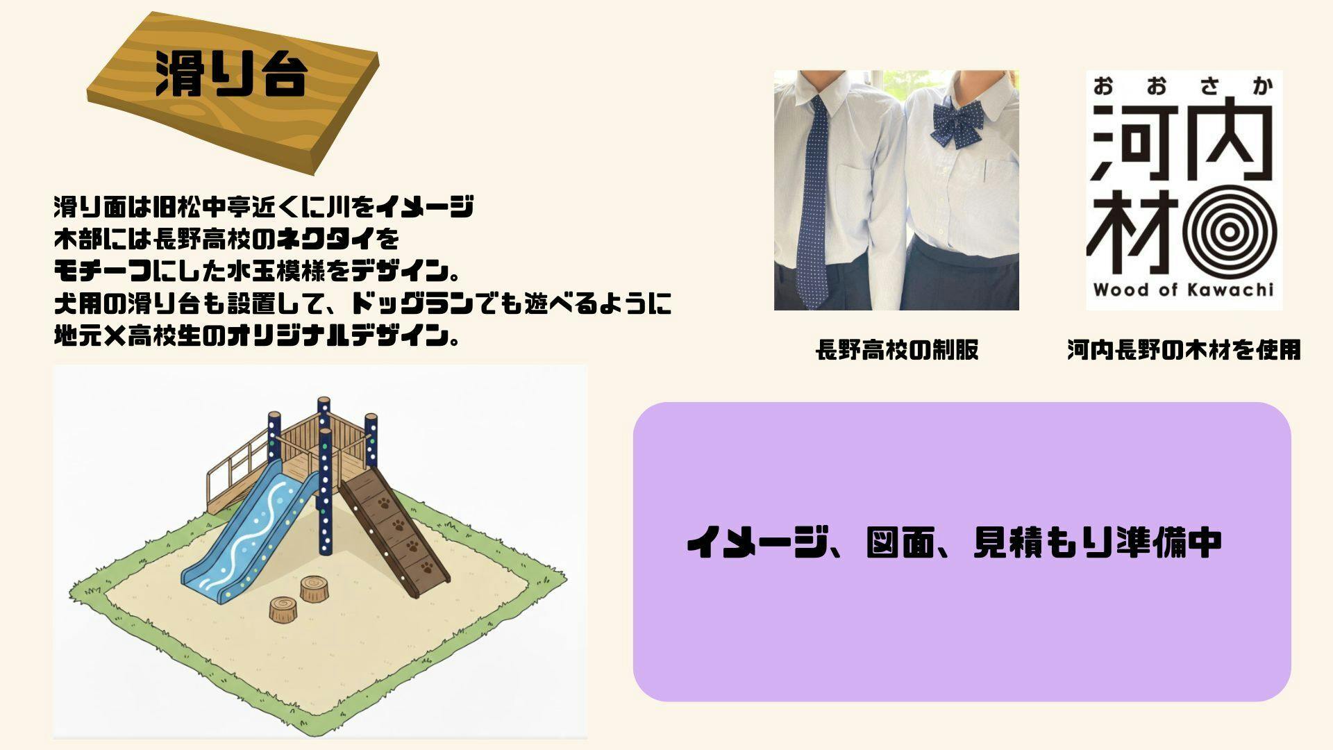 私たちが目指すのは、既製品にはない、地域への愛と高校生の創造性が詰まった世界に一つだけの遊具です。