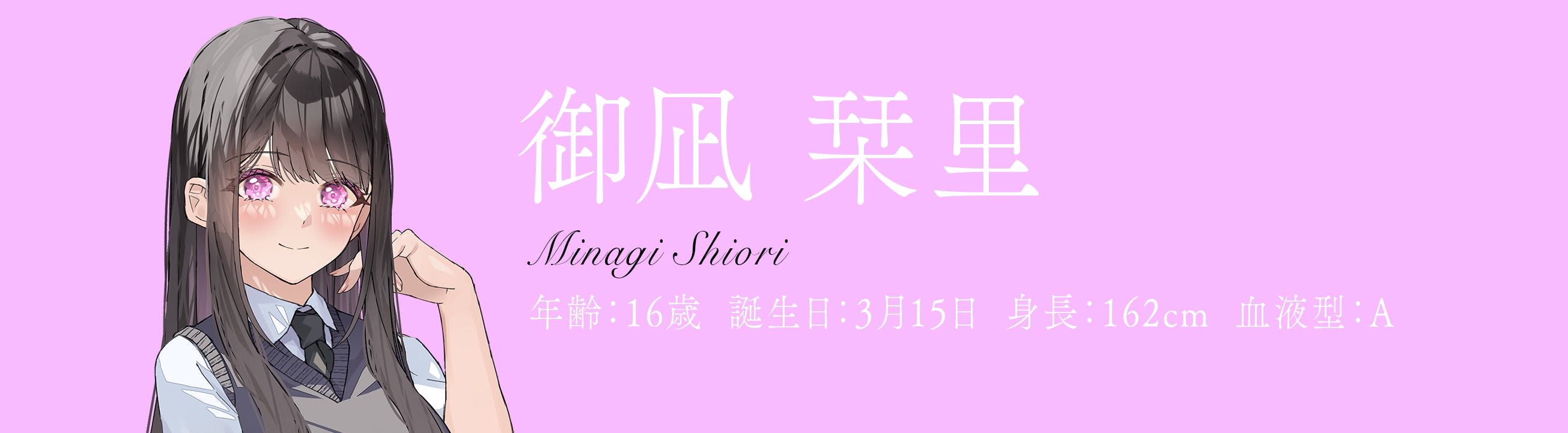 年齢:16歳 誕生日:3月15日 身長:162cm 血液型:A