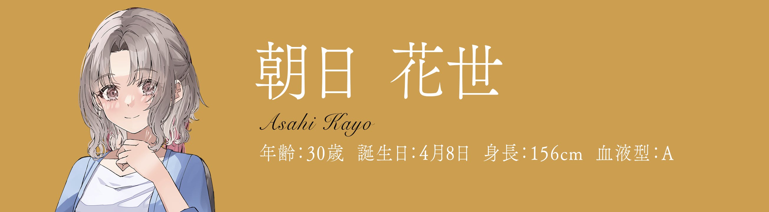 年齢:30歳 誕生日:4月8日 身長:156cm 血液型:A