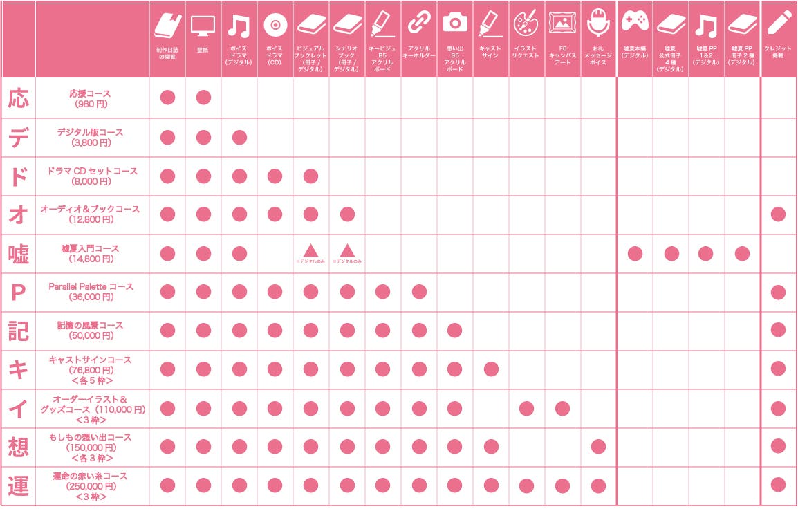 ※デジタルでの各種リターン・CD・冊子・アクリルキーホルダーのリターンはリリースと同時期にお届け予定です。