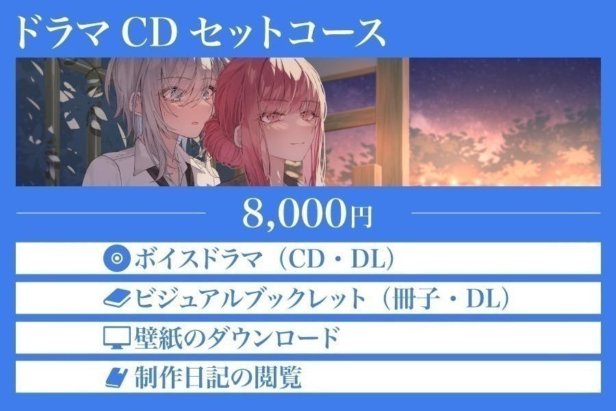 このプロジェクトは今年発売した百合ボイスドラマ『嘘から始まる恋の夏 - Parallel Palette -』の続編を制作するためのクラウドファンディングプロジェクトです。
