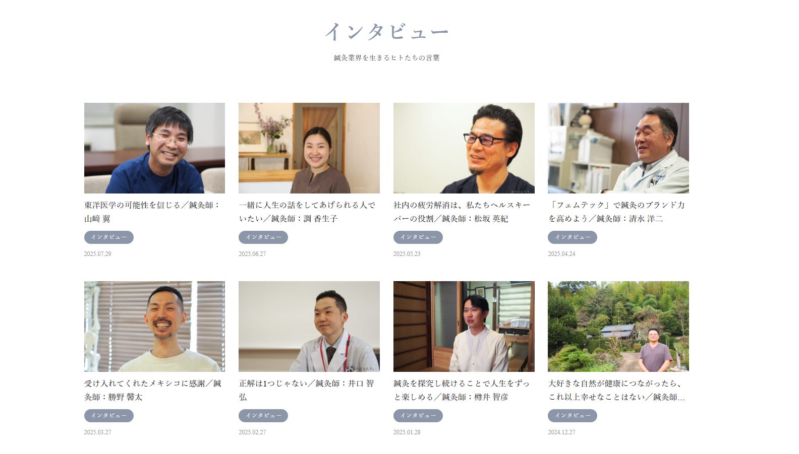鍼灸業界のヒトたちにインタビューを実施し、言葉と想いを伝えています。