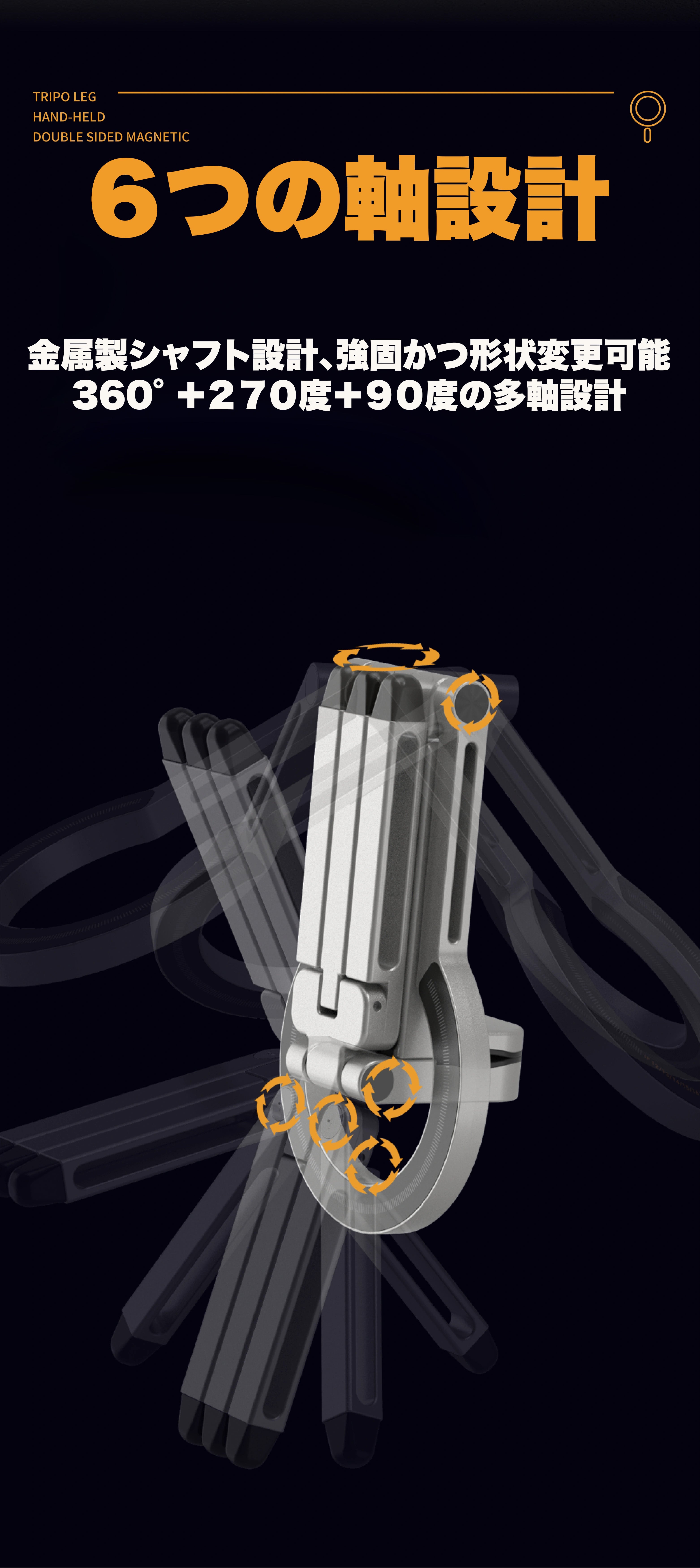 6つの軸設計により様々な角度で使用ができる。