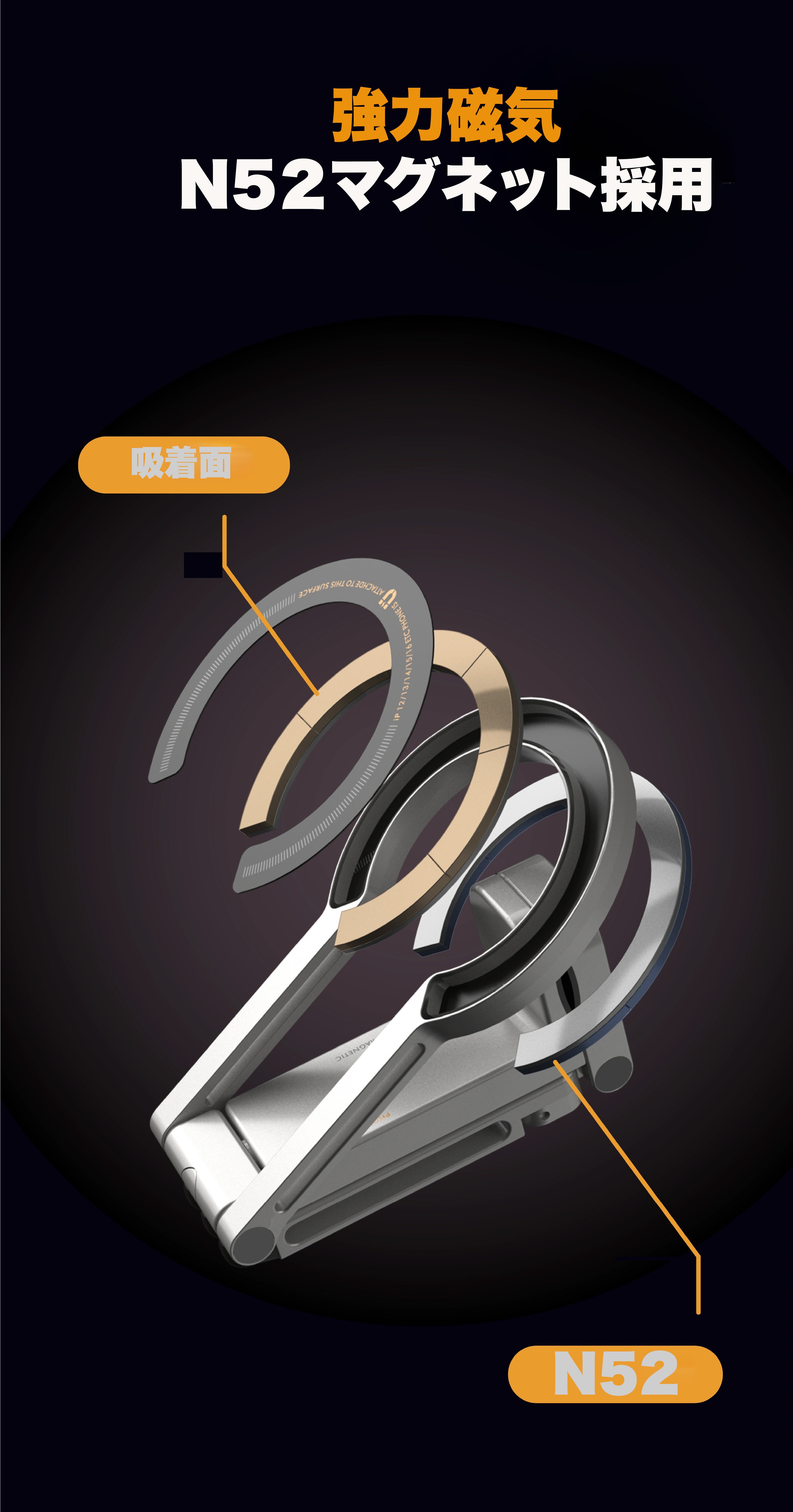 N52マグネットを搭載で強固な吸着を実現。