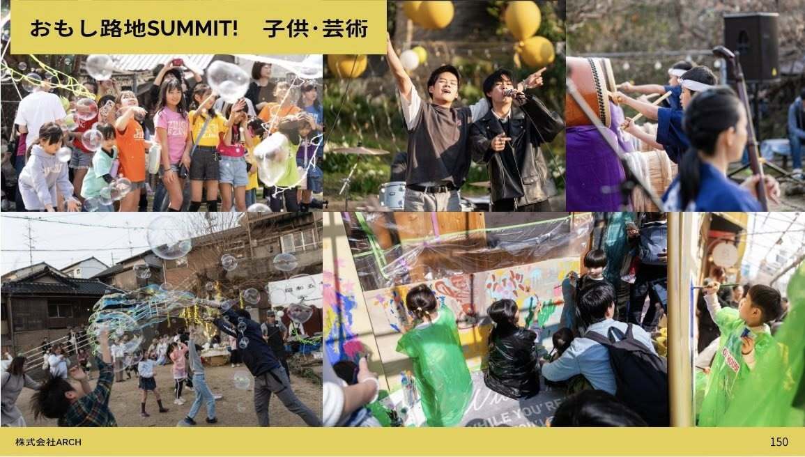 今年3月、私たちは竹崎・茶山エリア全体を舞台にしたイベント「おもし路地SUMMIT」を開催しました。路地での食・アート・音楽、子どもたちの自由な落書き、和太鼓の演奏。 1,000名以上が訪れ、様々な企画が街を彩った一日になりました。
