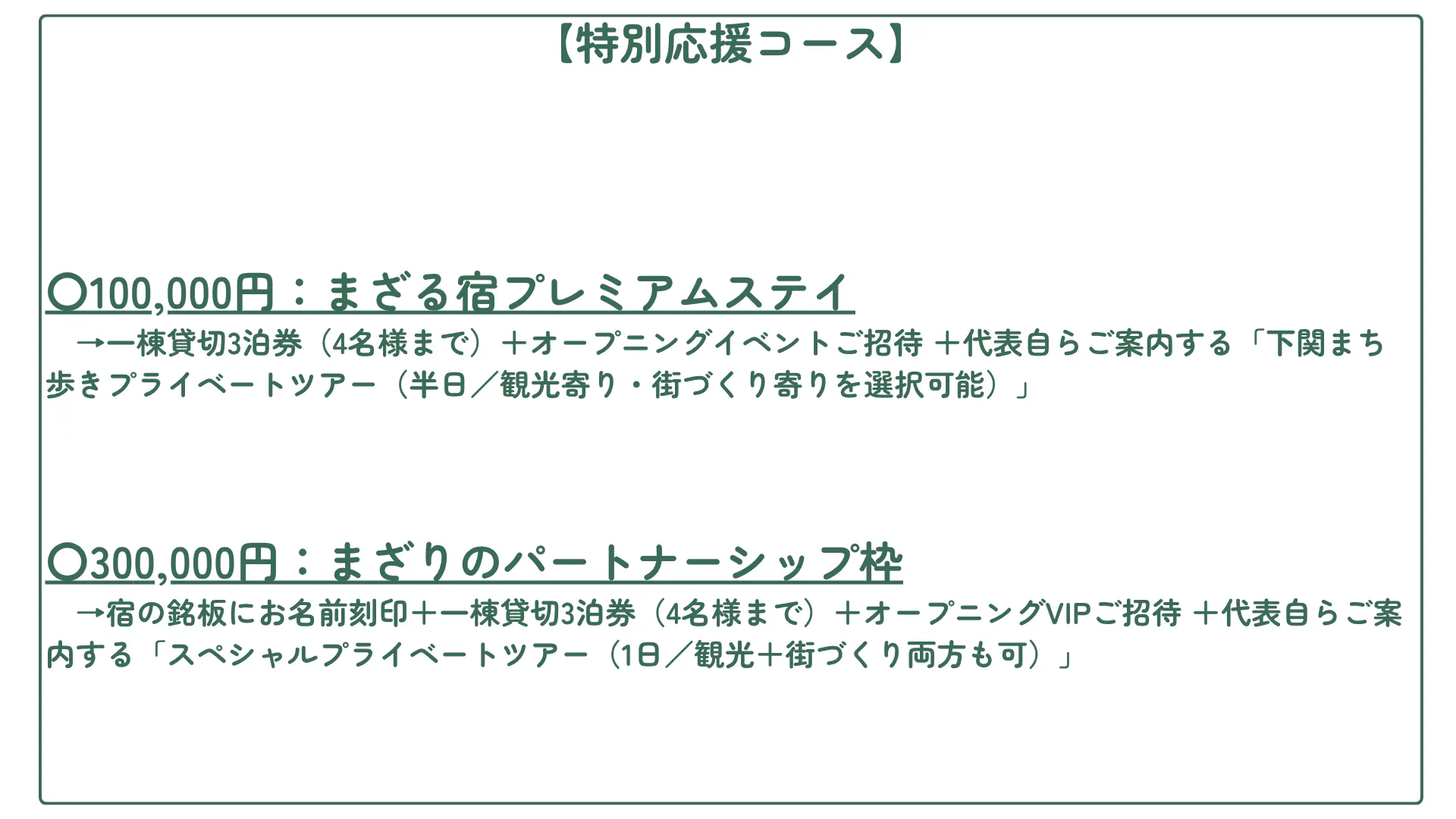 3月以降 宿泊券のご利用、特別コースのリターン開始
