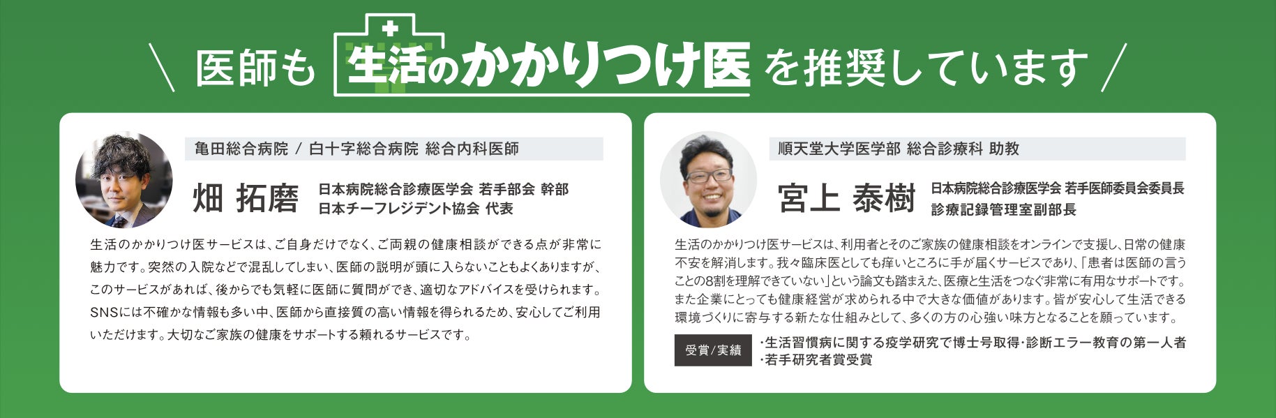 大学病院でもなかなか相談できない総合診療医と、日常で悩みを抱える皆さまを直接結びつけ、「日常の安心」を届ける新しいサービスを、医師チームと一緒に進めています。