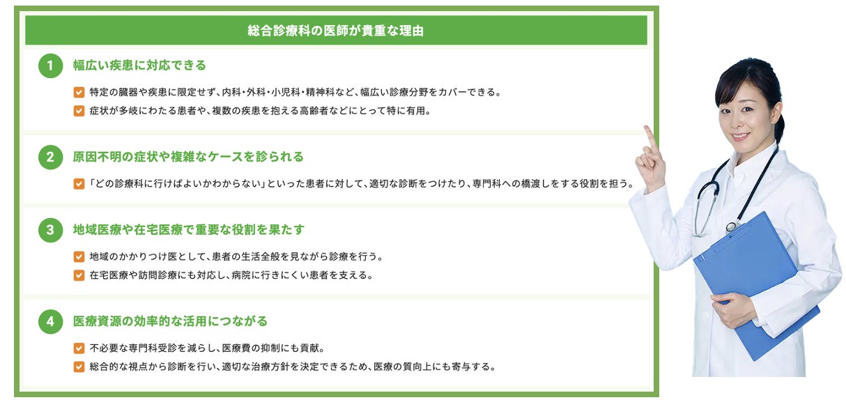 総合診療医の幅広い視点をもとに、個人の健康だけでなく、医療現場や社会全体が抱える課題の解決にも貢献していきます。