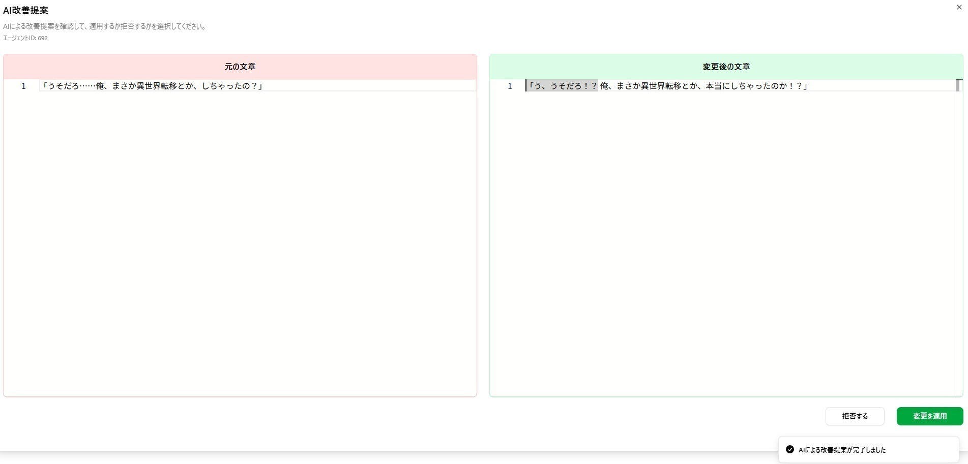 ・チャットベースでの小説執筆機能(高度な小説執筆AIエージェントの実装)