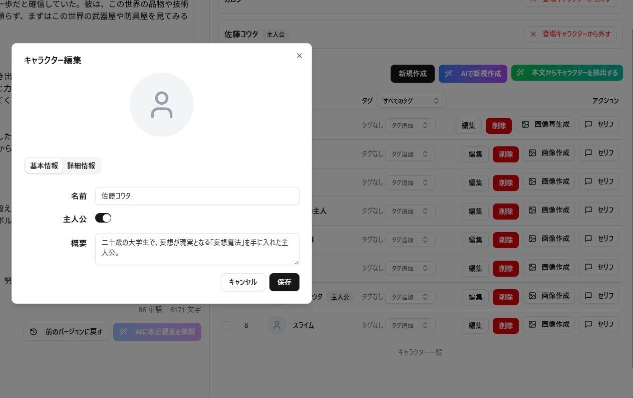 ・小説ごとにキャラクターや専門用語を管理できるデータベース