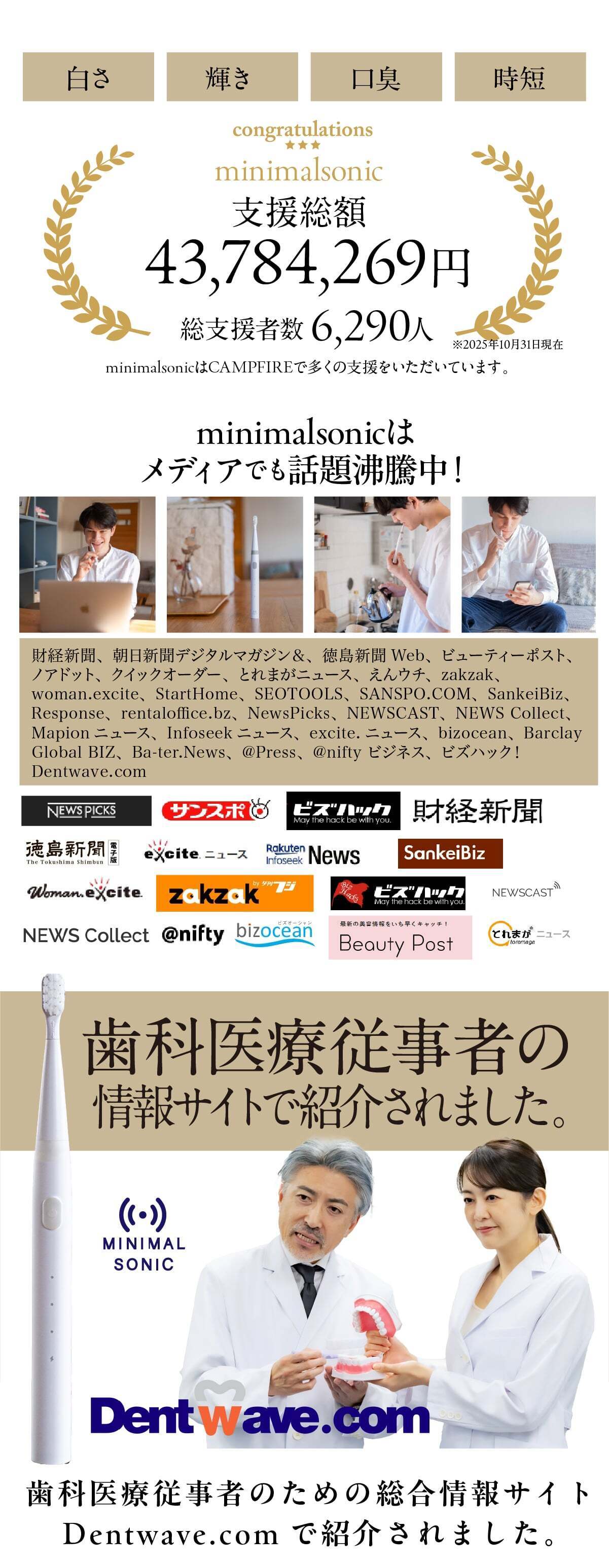 2025/11/30 20:00minimaltoothlabです。いよいよ「ミニマルソニック」のプロジェクトも本日終了となりました。毎日どんどん、ご支援頂き本当にありがとうございます。最後までプロジェクトの拡散・シェアのご協力を何卒よろしくお願い致します。■手磨きの180倍!ホワイトニングモード搭載!独自設計の白い歯GETガジェット!https://camp-fire.jp/projects/893669/view11月30日(日)23:59まで! もっと見る