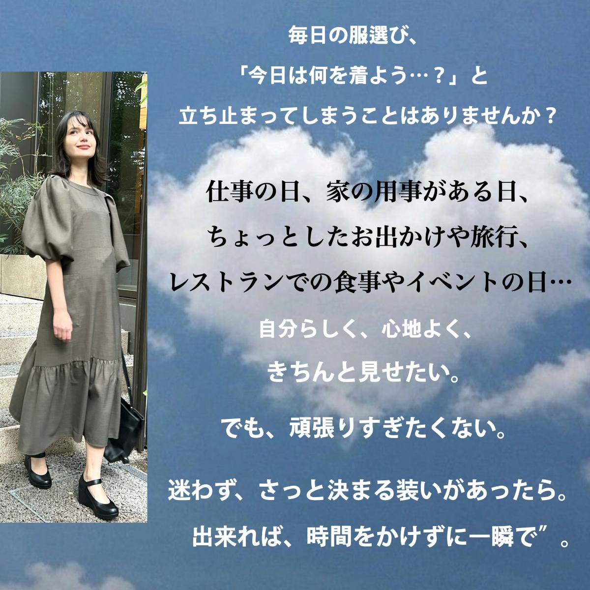 「お出かけ前の服選びを、時短に。ストレスを、楽しみに変えるドレス。」