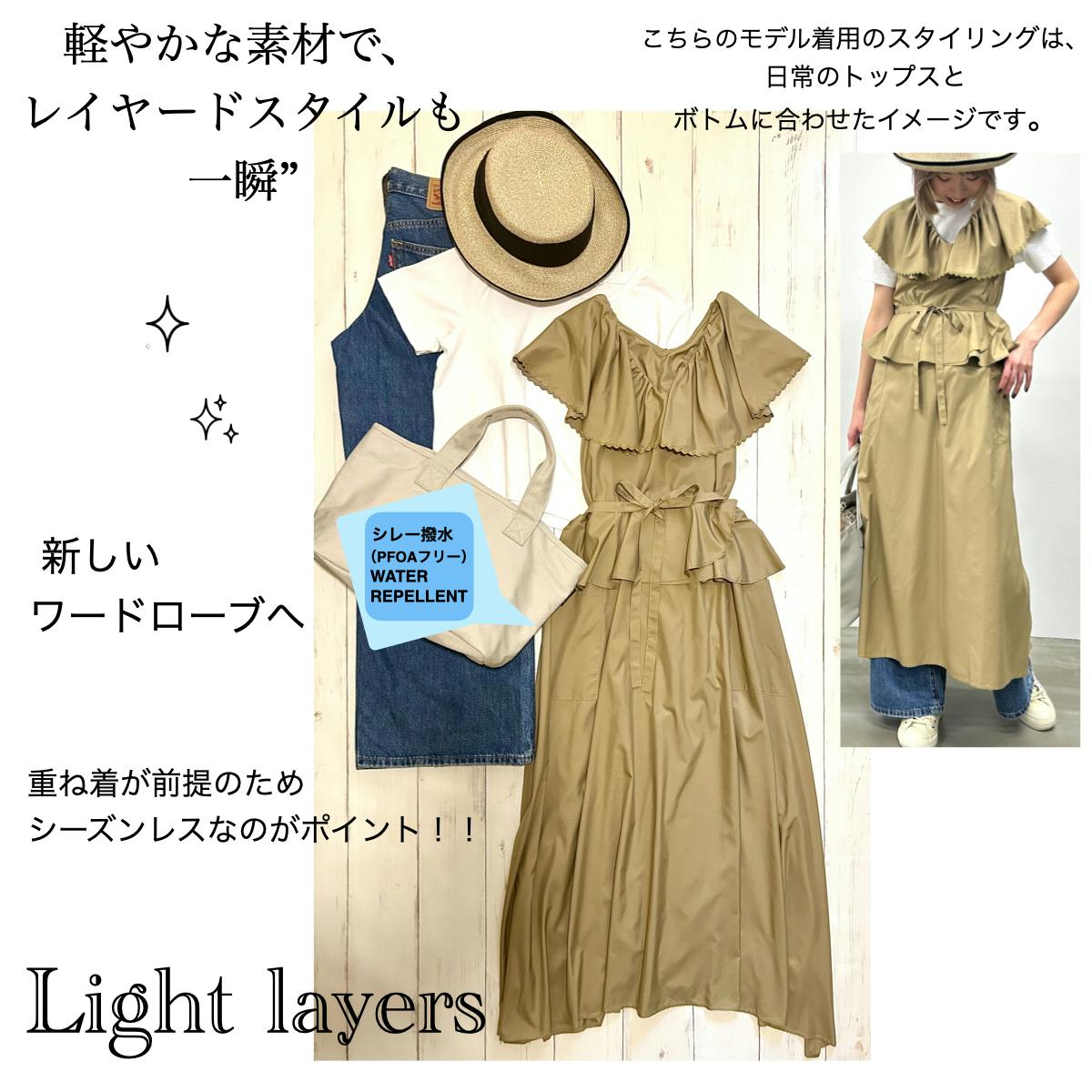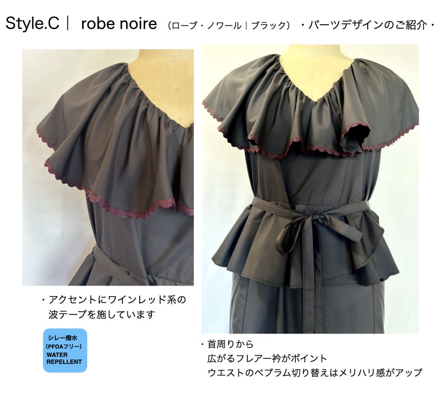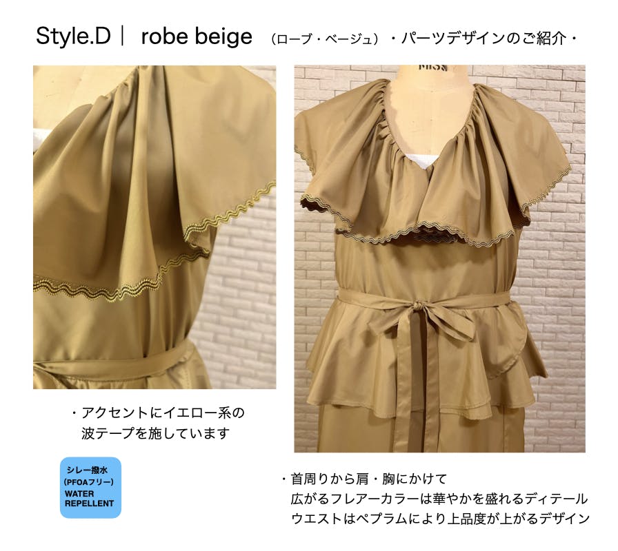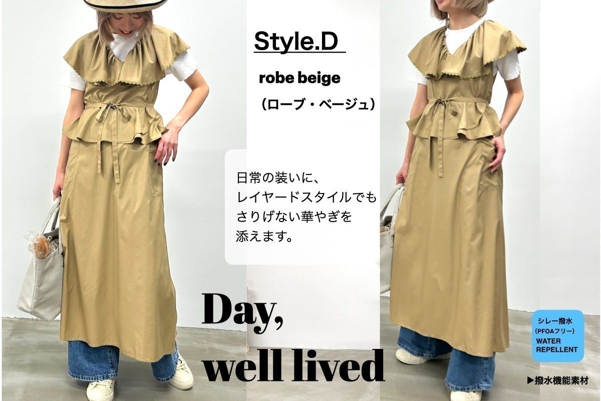 通勤や移動、外出や旅先など、日常には天候に左右される場面が多くあります。それでも、きちんと装い、心地よく過ごしたい——その思いは変わりません。服の上からさっと纏える事も、動きやすく扱いやすい。robe tablierの構造は、今の暮らしに寄り添う形だと感じています。この形に、機能性と美しさを重ね、新しい日常服として届けたい。もっと楽に素敵に。が本音です。