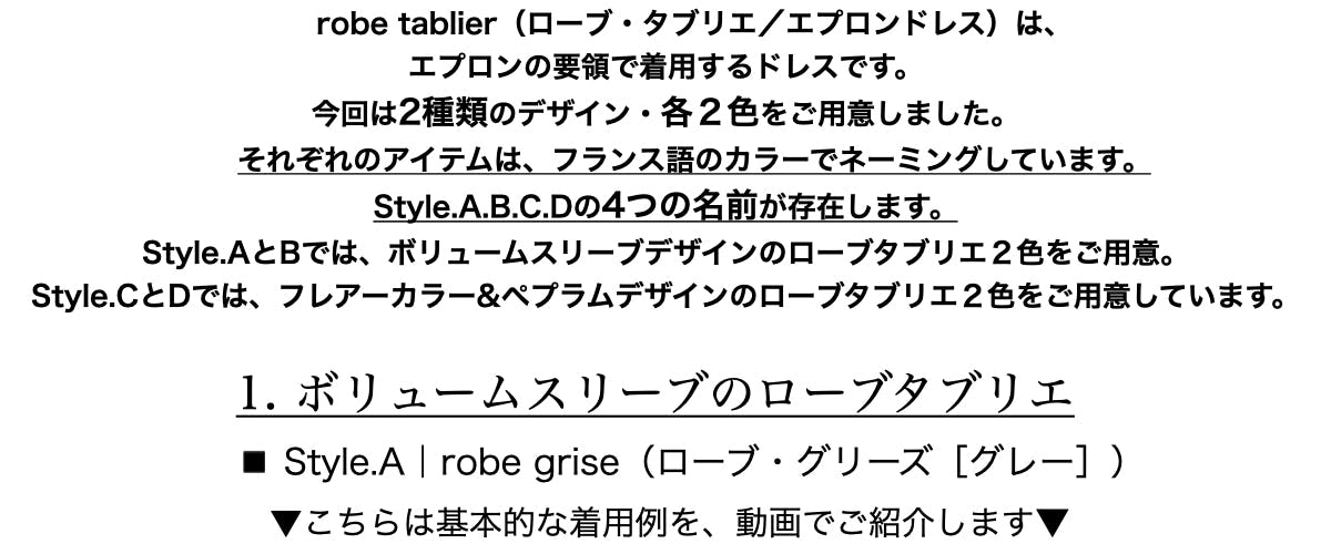 robe tablier(ローブタブリエ)は、フランス語で「エプロンドレス」。服の上からさっと羽織れるファッションアイテムとして親しまれてきました。その発想をもとに、結ぶだけの手軽さと日常に溶け込む上品なデザインを備えたドレスを、現代のワードローブとして展開したいと考えています。ぜひご支援ください。