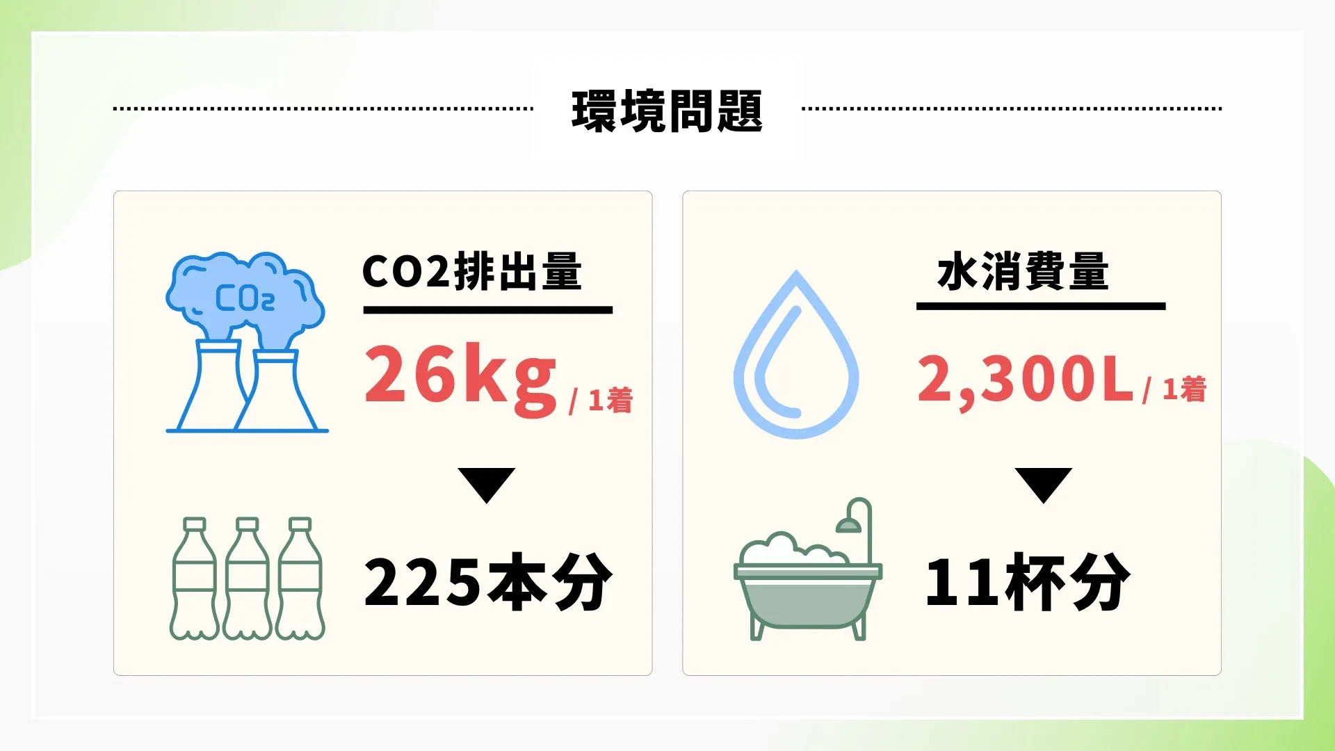 現在、ファストファッションの影響により、流行を追ったデザインの服が大量に生産・消費される「大量生産・大量消費」のモデルが拡大し、その結果、世界では、なんと年間約3000億着もの衣類が廃棄されています。