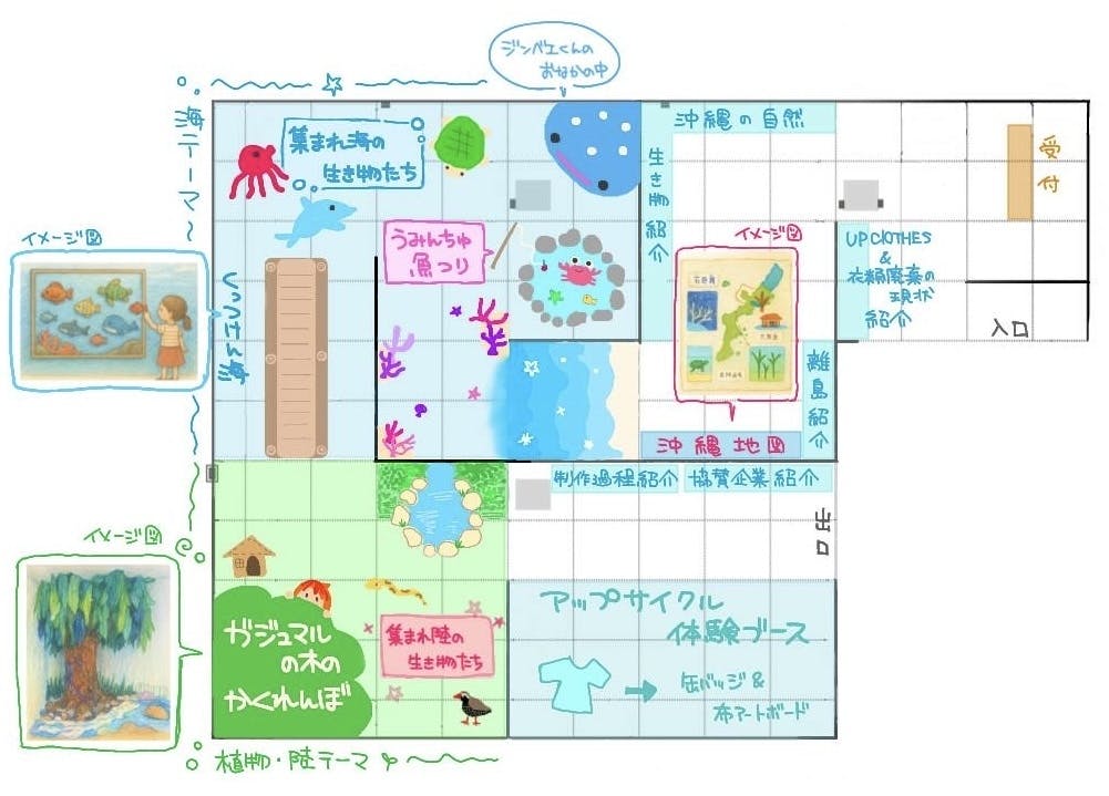 沖縄の離島に暮らす子どもたちもともに、古着を使ってそれぞれの島の自然や生き物を表現していきます。