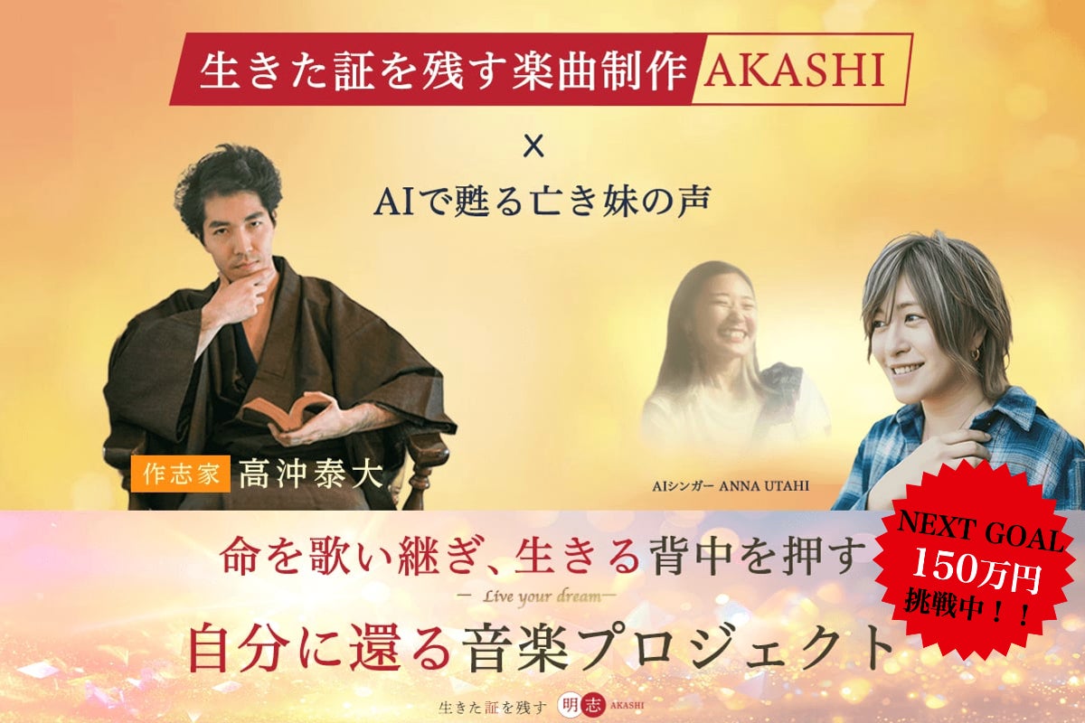 生きた証を残す音楽プロジェクト AKASHIは、僕自身の夢を実現させながら命や想いがこの世界に確かに存在したことを、音楽として未来へ手渡すプロジェクトです。