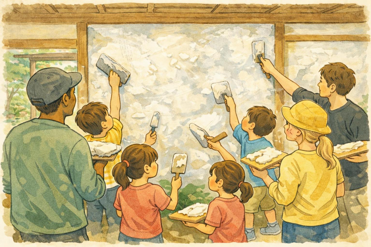 ・玄関や廊下などはプロの職人さんと一緒にDIYワークショップで仕上げる