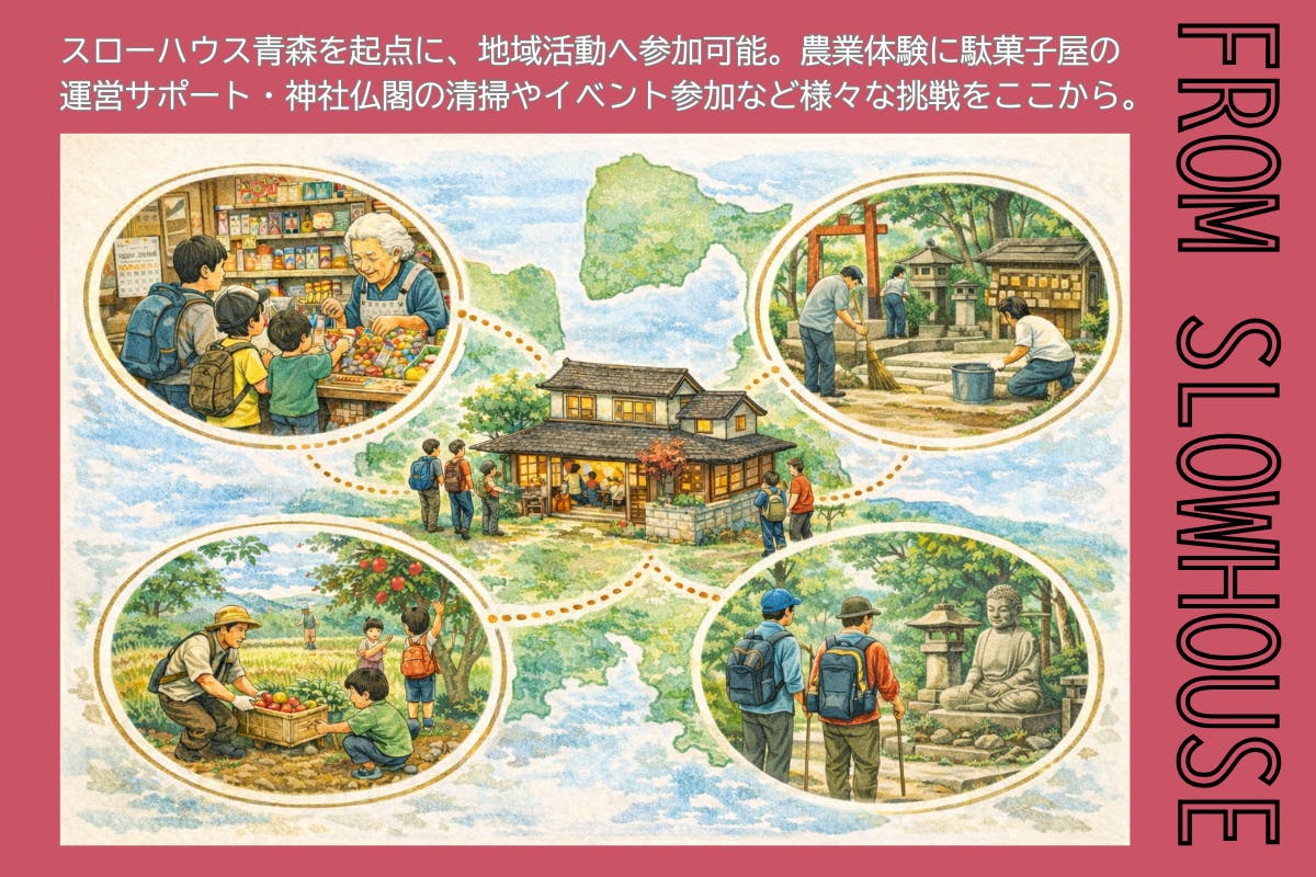青森市にある空き家を再生し、宿泊だけでなく農業・駄菓子屋・神社清掃・子どもの居場所づくりなど、人と地域が自然につながる交流型ゲストハウス【スローハウス青森】をつくります。