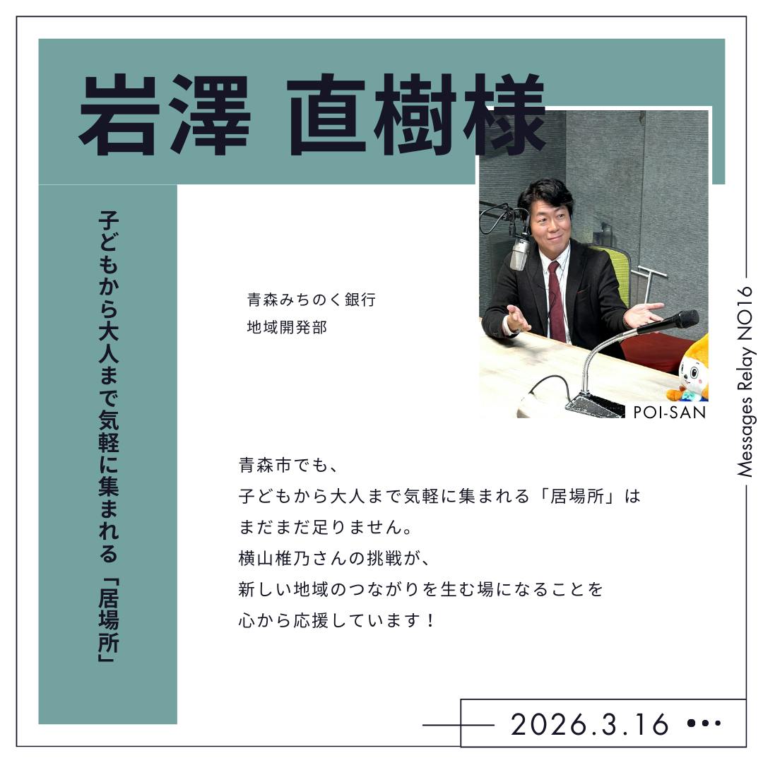 2026/03/16 20:31本日の応援メッセージは、いつも応援してくださる心強い味方!地域を支える「青森みちのく銀行」地域開発部所属、みんなのポイさんこと岩澤直樹さんです。ポイさんとの出会いは以前参加していた経営者団体の東北フォーラム。私の講話を聴いてくださり、終了後に話しかけてくださったのがきっかけでした。昨日の鳴海にとどまらず、まだ人に頼るのが苦手だった私は相変わらずドギマギしながら(^^;)w少しずつ交流していく中で(図らずも何度もその後お会いする機会があり)楽しい時間を過ごしながら沢山のサポートを頂きました。その中でも、神社仏閣お掃除ボランティアteam109にとって大きな契機となったのが初の助成金をいただくことになったこと。(公財)みちのくふるさと貢献基金をご紹介頂き、採択されました。HPより画像お借りしました。「神社仏閣」って「宗教じゃないんだよ」「地域振興」として「文化振興」として可能性があるんだよとオフィシャルに認めていただいたと感じとても嬉しかったです。おかげさまで普段の社寺の清掃活動が円滑になったことは勿論チャレンジしたかった「こどもご朱印プロジェクト」にも着手することができました。岳暘保育園さま高杉小学校さま弘前市 高照神社にてNEO宵宮で販売世代を超えて、社寺や文化を持続可能にするためにまずは郷土愛の醸成、価値の再認識を図りかつ売り上げを社寺と子どもたちに分配する仕組みづくりを行いました。ポイさんが繋げてくださったチャンスがあったからこそ取り組めたチャレンジです。イベント当日はあいにくの雨でしたが、地域の子どもたちが傘をさして歩いて遊びに来る姿が沢山みられ「また来たい」「楽しかった」「作品を皆に見てもらえた」と喜びの声も上がり「売り上げが神社のためになるともっと嬉しい」という児童の声も聞きました。今年も、そしてこれからも地域の為に引き続き取り組んでまいります!そして私たちの新たな拠点スローハウス青森でも、更に活動の幅を広げながら地域に貢献し続けて参ります♪ポイさん、いつもありがとうございます!これからも、よろしくお願いいたします(^^) もっと見る