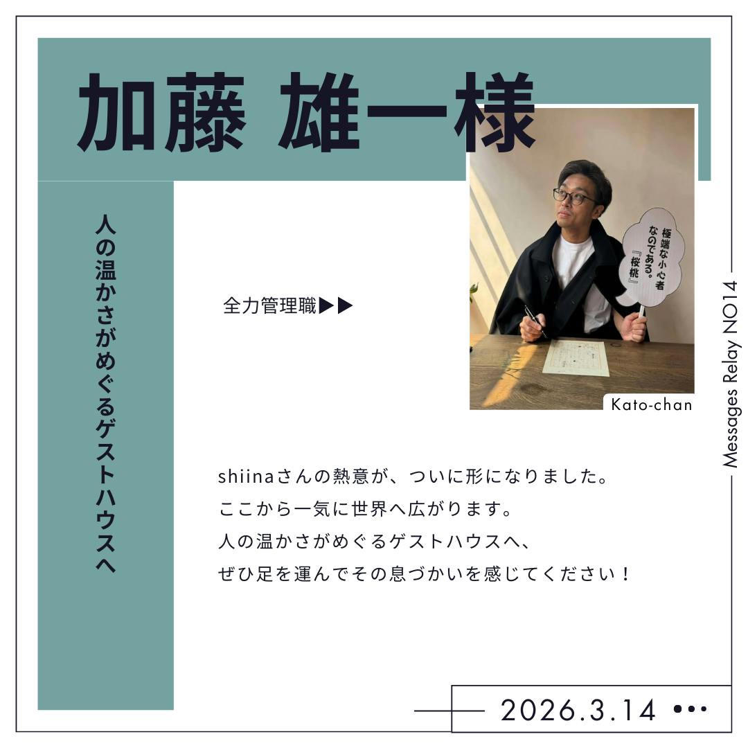 クラウドファンディングやろうと思ってるんだけど、誰かキュレーターやってる方とかお知り合いいますかー?と、以前応援メッセージも頂いた石丸弘さんにミーティングの際にお話したところ伊藤研人さんをご紹介いただき、からのお繋ぎいただいたのが現在ご担当いただいておりますコッス―こと高橋幸佑さんです。北海道にいらしたり千葉にいらしたり、行動範囲が広いコッス―さん。クラウドファンディングのご相談をするとき、「私かなり忘れっぽいのでお尻叩いてください」という他力本願な私のサポートを何度もしていただき日程などもうようよと紆余曲折するなか柔軟にご対応いただいたり返礼品のアドバイスなどをいただいたりと伴走していただきました。間もなくクラウドファンディング期間も折り返しとなりますが引き続きご協力いただきます!コッス―、ありがとうございますー!