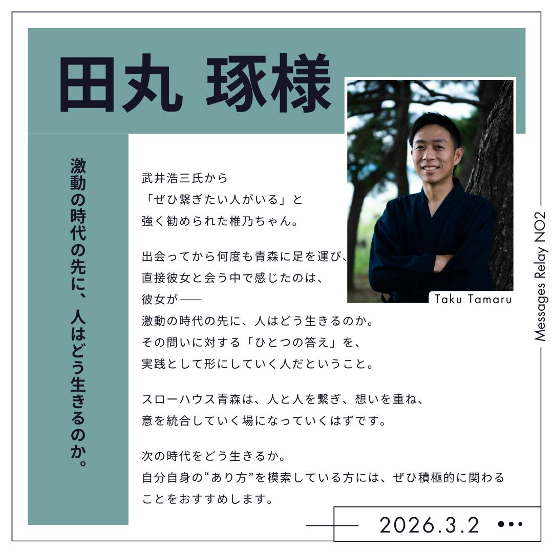「青森縄文ツアー」など多数ご協力を賜っております『印章彫刻士』田丸琢様(以下、たまちゃんと呼ばせていただきます)からいただいたメッセージを掲載いたします。
