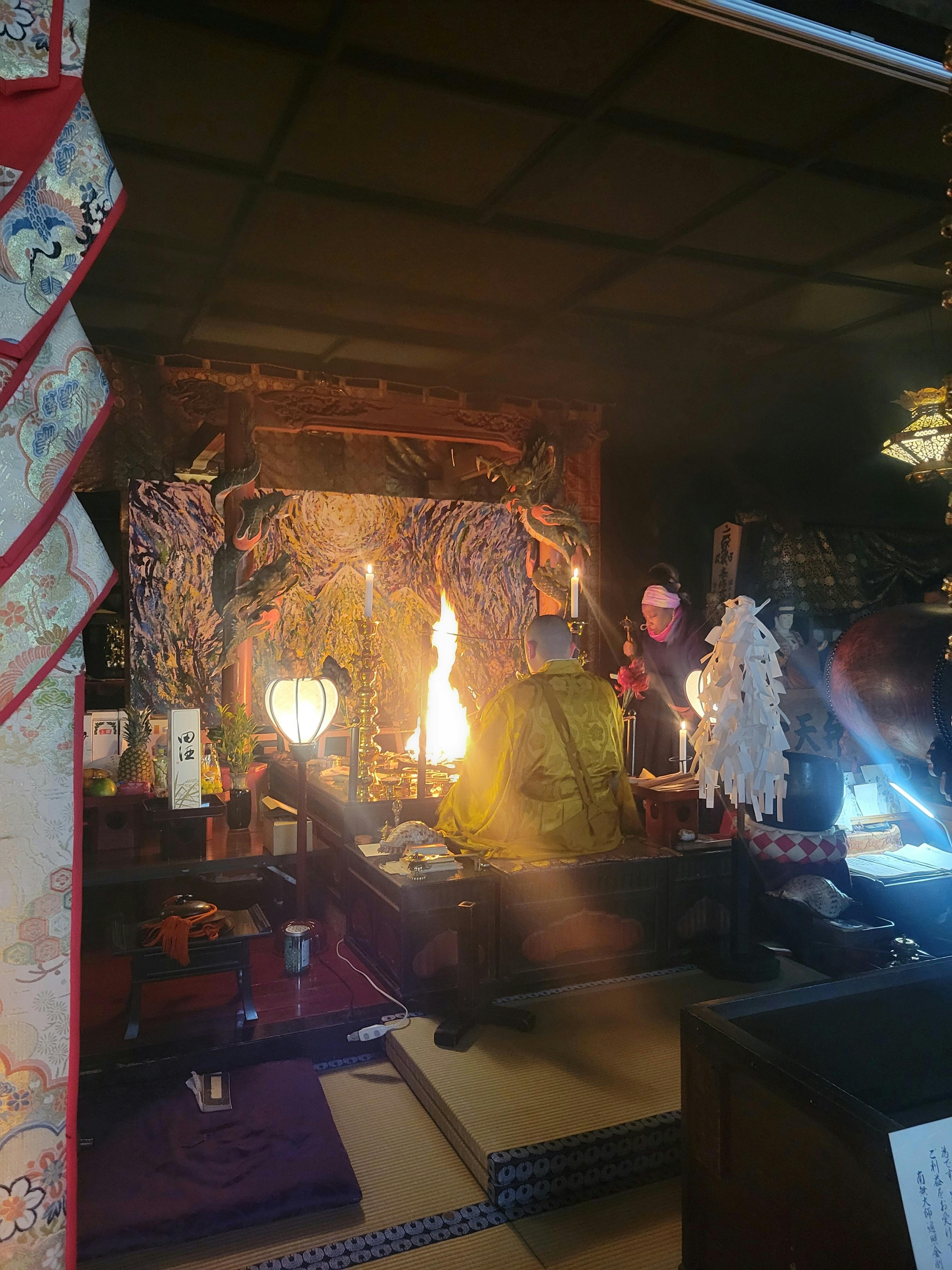 弘前市久渡寺のなか、そして私に最も縁深い「おしらさま」という神様の前で描いてくださった特別な絵画です。