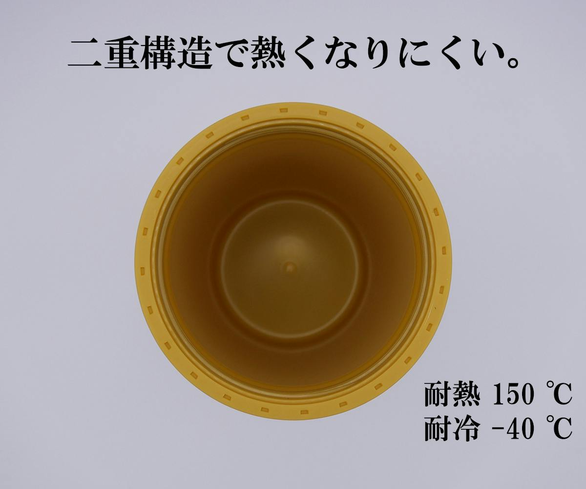 本製品は、二層構造で熱をとどめず、高温の飲み物でも熱くなりにくく、冷たい飲み物を入れても結露しにくいという特徴があります。