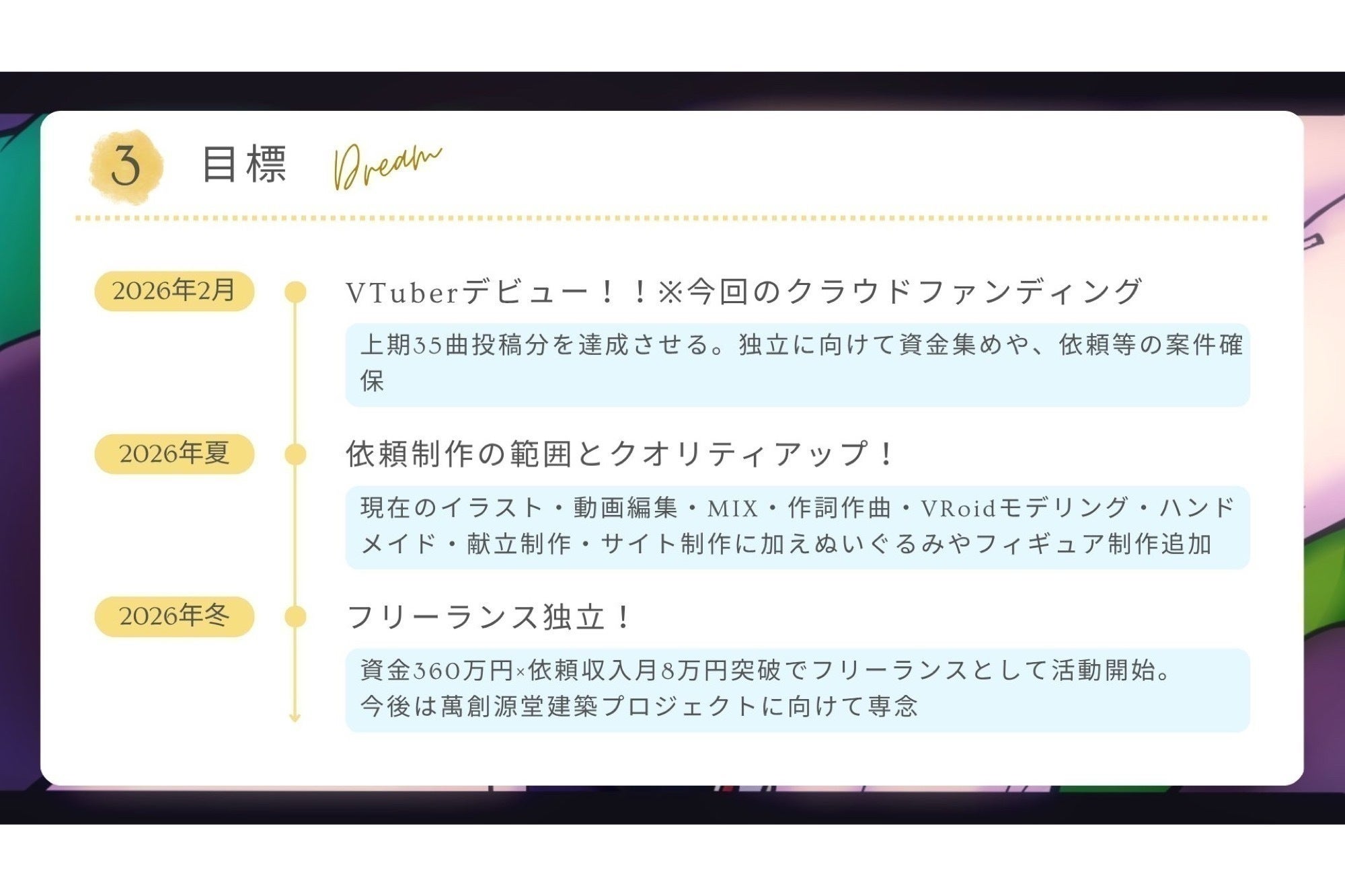 2026年上半期(1〜8月)の「歌ってみたMV」制作費に充てさせていただきます。