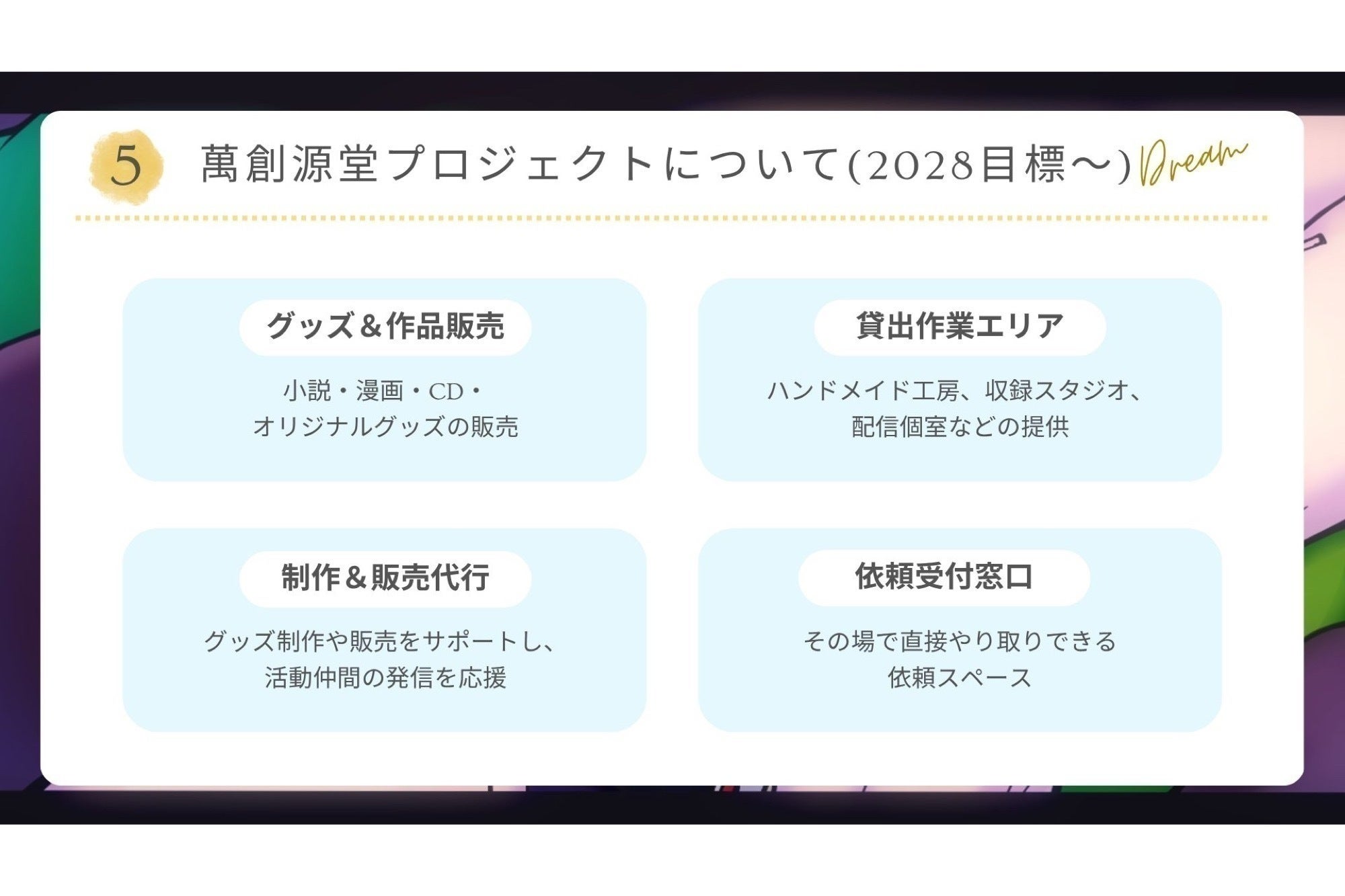 萬創源堂ブランドを象徴するキービジュアル1枚絵データ(限定公開)+5,000円割引券。