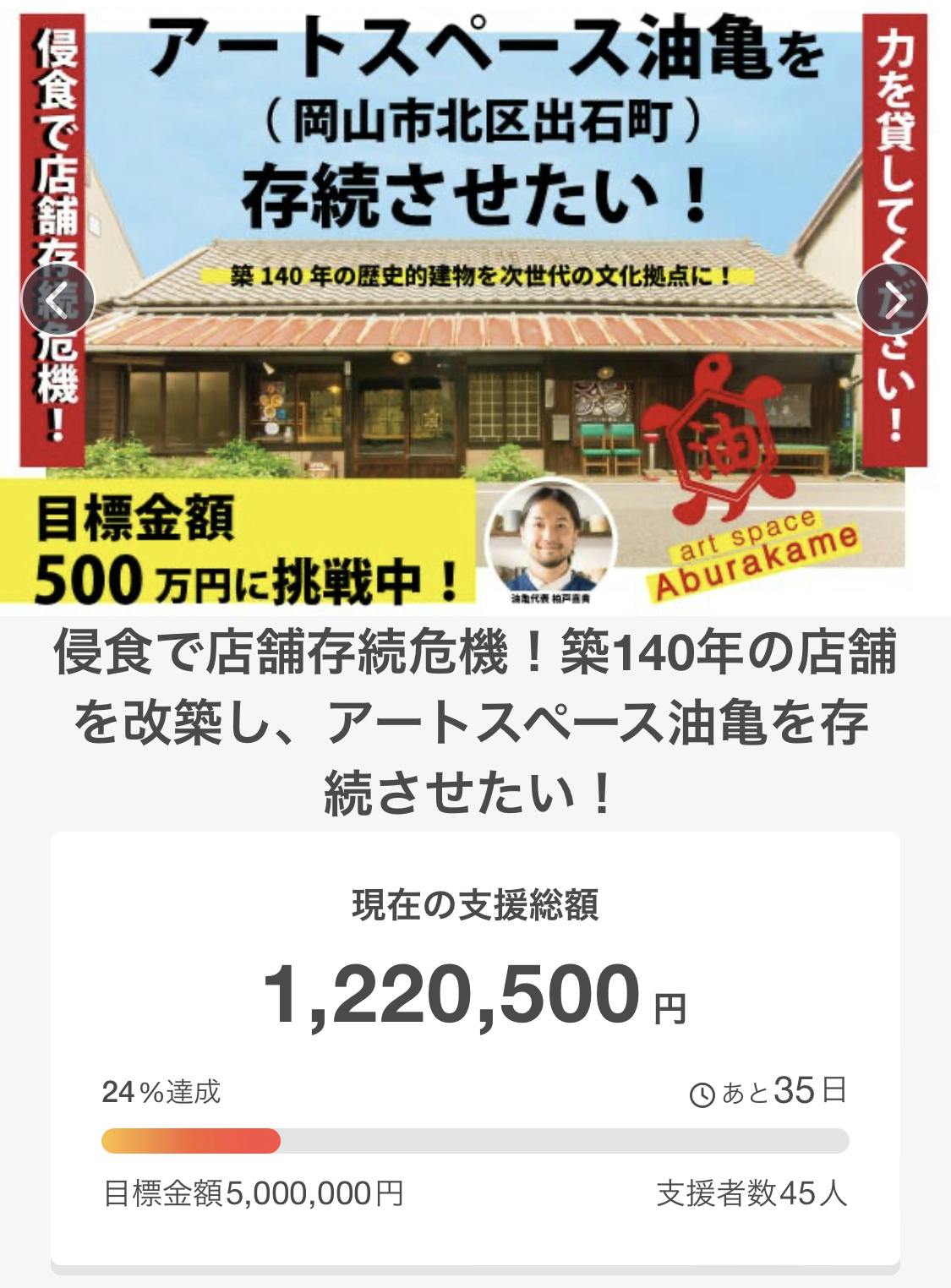 「ほかのみなさまのようにヘビーユーザーではありませんが、時々伺って、購入させていただいています。城下町の歴史とみなさまの作品が融合した唯一無二の場所だと思っています。このような場所(油亀)が、ずっと存在し続けてほしいと思い、支援させていただきます。むしろ、支援させていただけることをうれしく思います。」