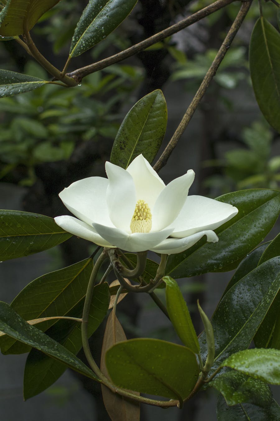 タイサンボクが枝の上の方に咲くために、開花の季節が訪れるたびに、注意深く観察するようになりました。