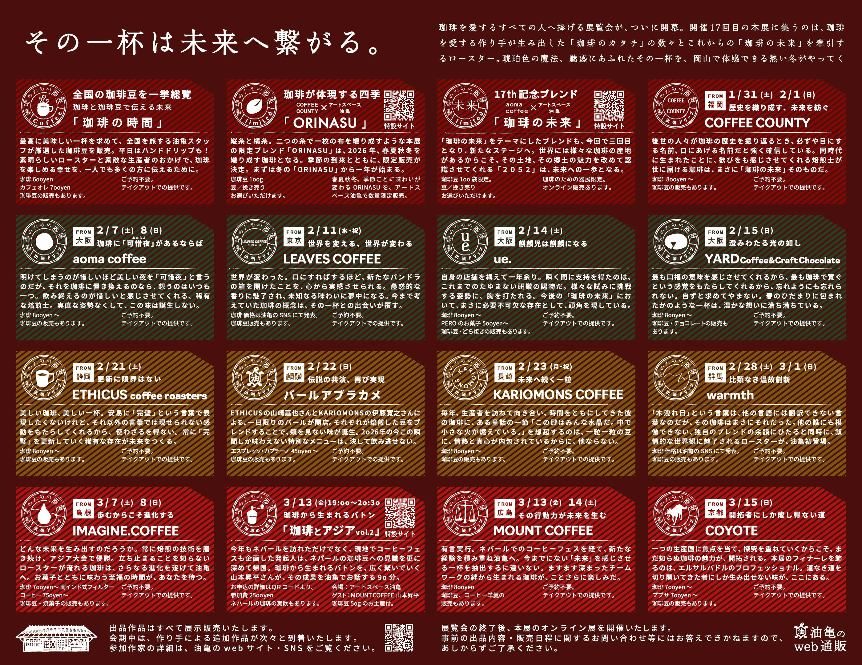 17回目を迎える2026年は、2024年から私たちが取り組んでいる「珈琲の未来」をテーマに掲げ、この副題を添えました。