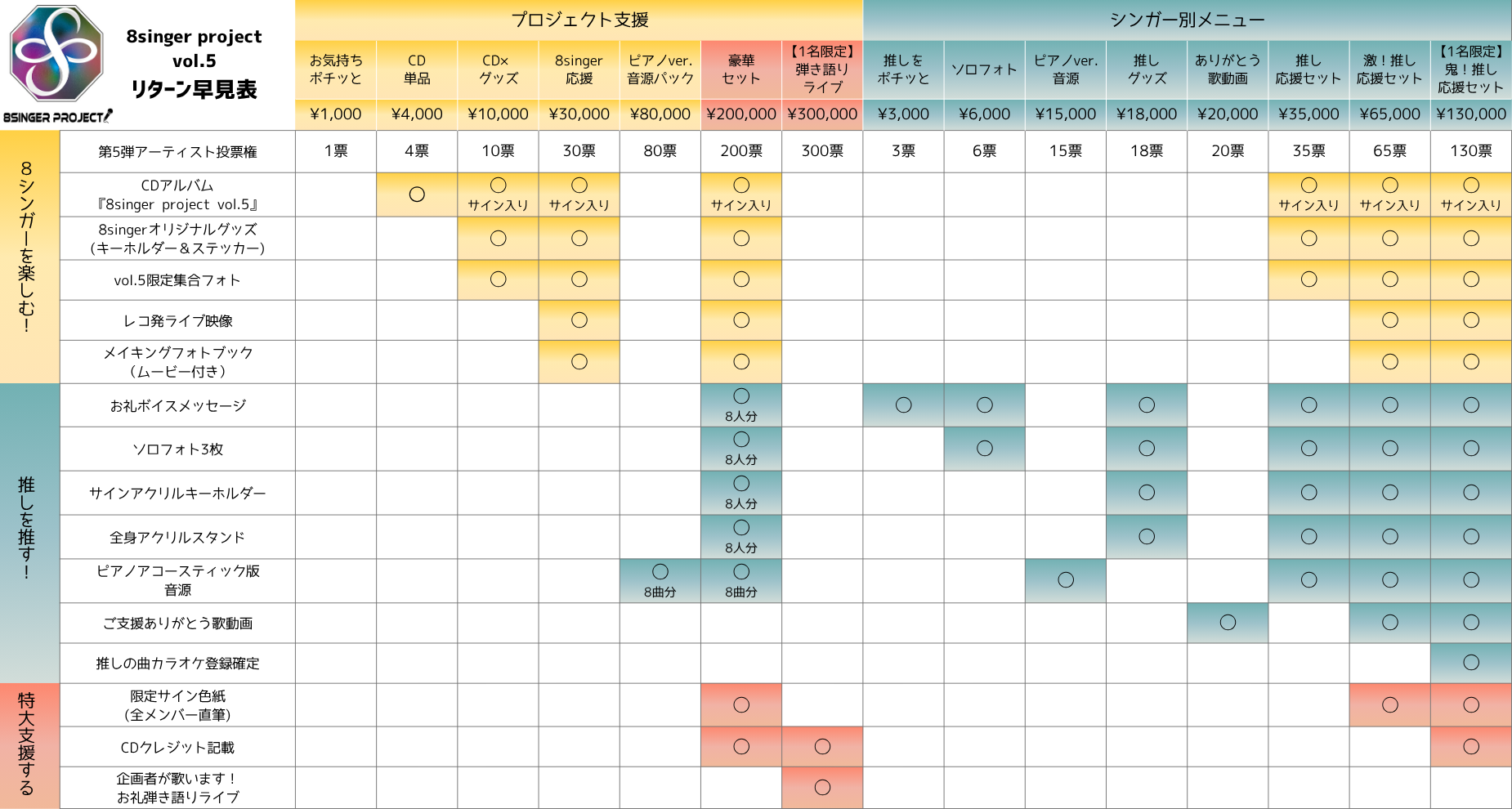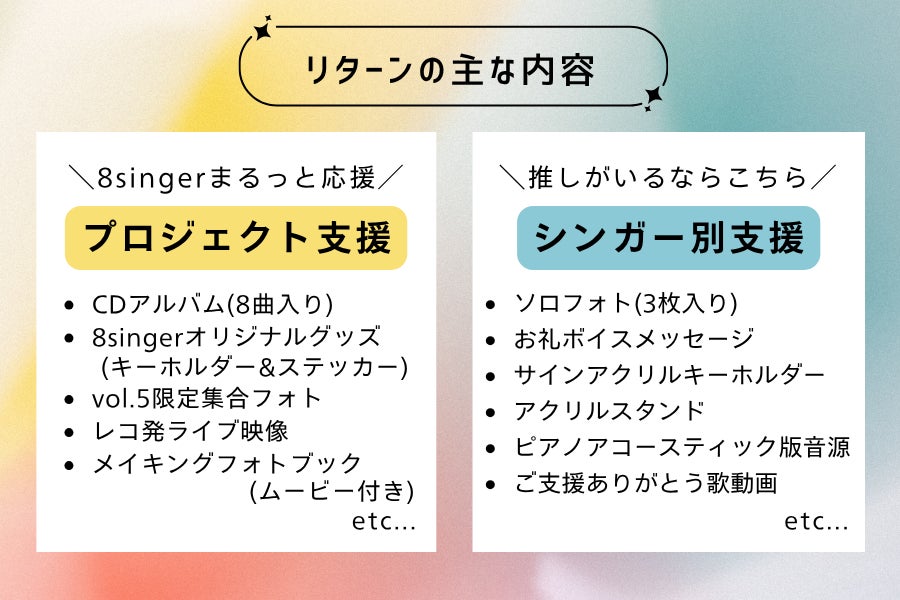 ①8singerをまるっと応援できる ◆プロジェクト支援◆